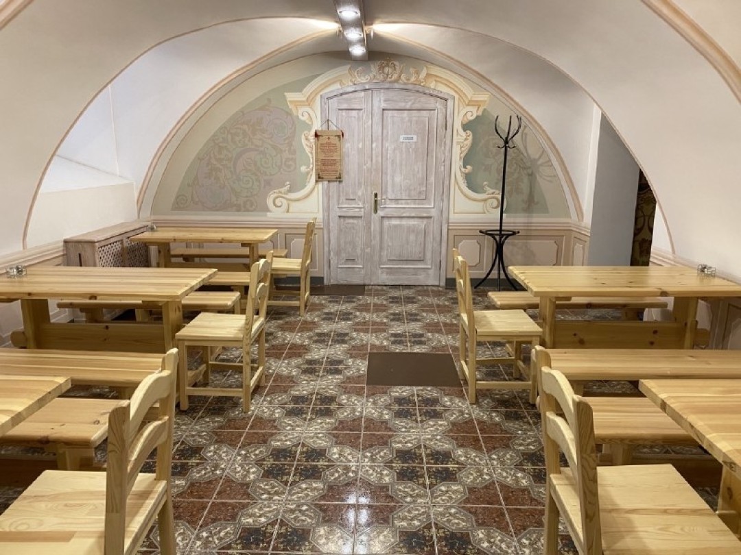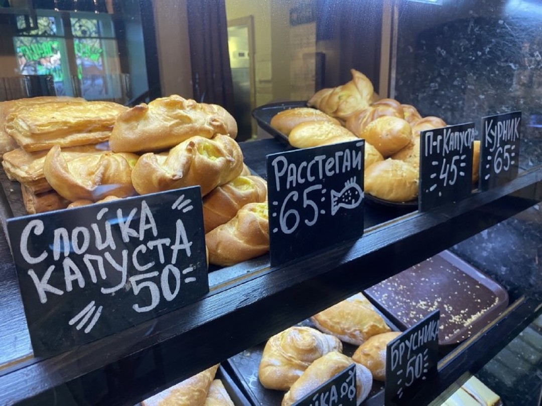 Идти сюда следует за пирожками, цены на которые стартуют от 40 руб., большими горячими бутербродами и квасом. Имеются антикризисные специальные предложения вроде монастырского супа дня и пирога за 100 руб. или набора из кофе и 4 пышек за ту же цену.