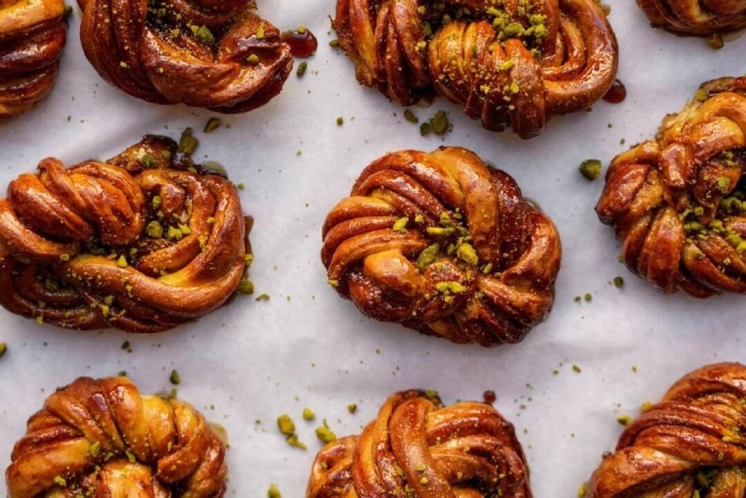 Во-первых, конфетная фабрика теперь печет булочки — каждый день разные. Английские сконы, американские синнабоны и наши любимые с детства творожные ватрушки стоят по 100 руб., а с фильтр-кофе — 180. Во-вторых, команда объединилась с «Футурой», чтобы запустить лимитированное «Суфле Птичка» со вкусом заварного лимонного крема — оммаж легендарному краффину с меренгой. Конфета будет продаваться только в бистро и углах «Футура».