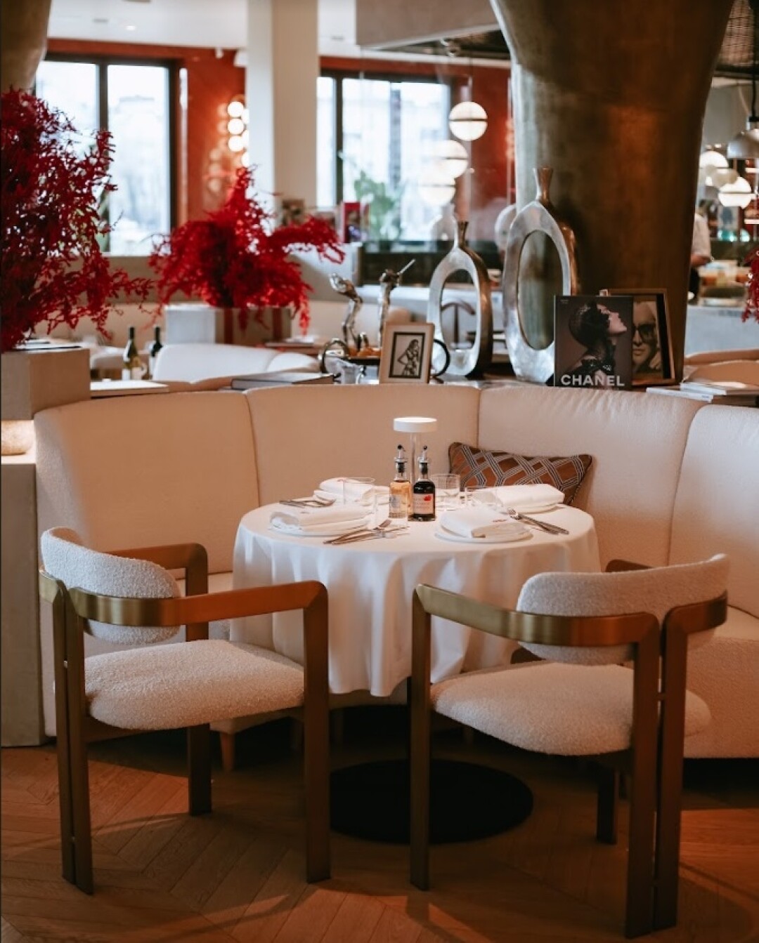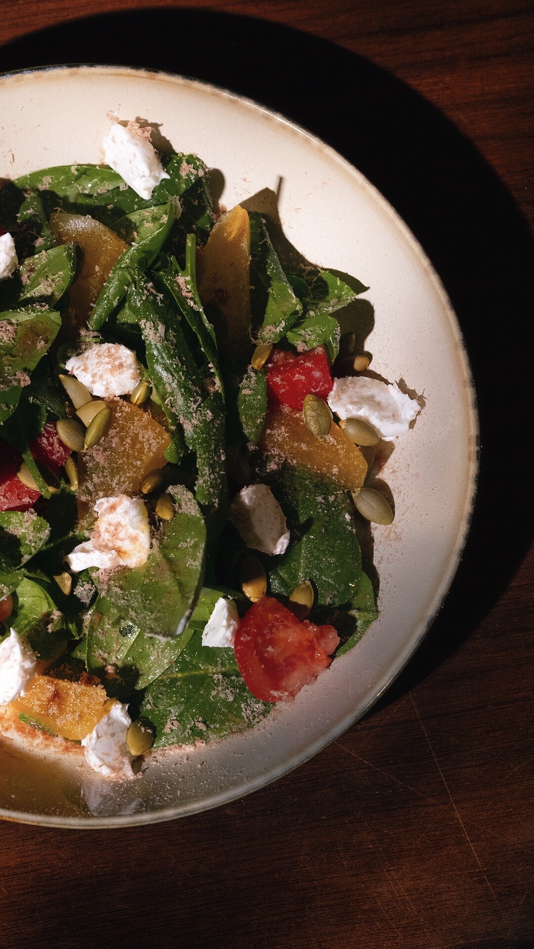 Идти в итальянское необистро следует не только за коктейлем в интерьерах с духом миланских галерей и винилом, но и за сезонным обновлением от шеф-повара Алексея Трофимова. Берем салат с брезаолой, хурмой и козьим сыром, минестроне с говядиной, песто и пекорино или утиную ножку с айвой.