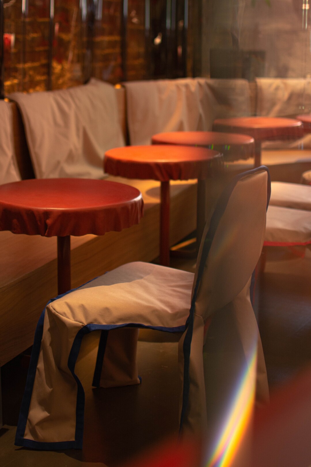 Интерьер новой пекарни от гастрогиков Дмитрия Кюлленена, Александра Бугаевского и Антона Кузнецова, подаривших нам (и столице!) лапшичную ossu, больше напоминает какой-нибудь артхаус Ларса фон Триера: полупрозрачная пленка с вышивкой, стулья в комбинезонах, лепестки цветков, вырезанные в нержавейке, и столики из бетона, имитирующие небрежно накинутую скатерть. Сюда идем за тартами, усыпанными ягодами, шоколадными бабками и булочками шу, а во двор «Бутылки» — в их же киоск с мороженым.