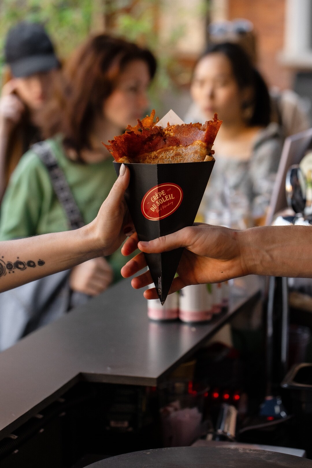 Это тоже временный — летний — поп-ап от команды Bekitzer family во дворе «Бутылки», но превью полноценного кафе, которое откроется уже в этом году. Крепы — французские тонкие гречневые блины-галеты. Начинайте с сытных начинок, вроде ветчины, сыра и слегка жидковатого яйца, а заканчивайте сладкими — с фламбированной грушей или каштановым кремом. Именно так советует делать ресторатор Павел Штейнлухт, организовавший парижский стритфуд в Петербурге.