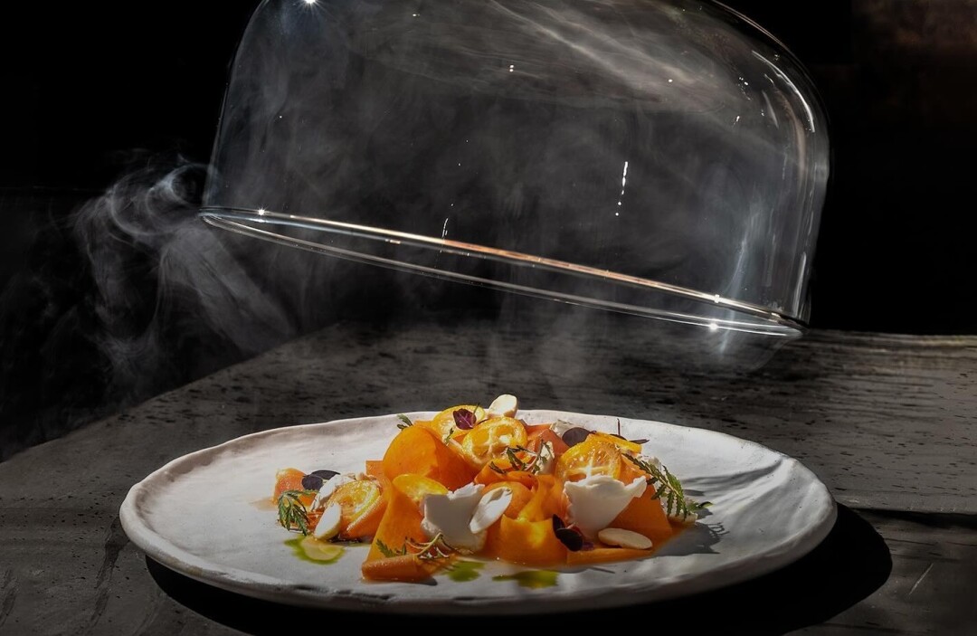 Костный мозг в хересе с гелем из изюма и малины, карпаччо из говядины с японской капустой мизуной и жемчугом из ряженки и китайских бобов: шеф Валерия Скуратова выпустила 74-ый сет ресторана ЕМ. Помимо перечисленных сложных сочетаний в меню еще красная икра с маскарпоне и фисташками, осьминог и ананас с краснокачанной капустой, лосось с гранатом и кумкватом и еще три курса.