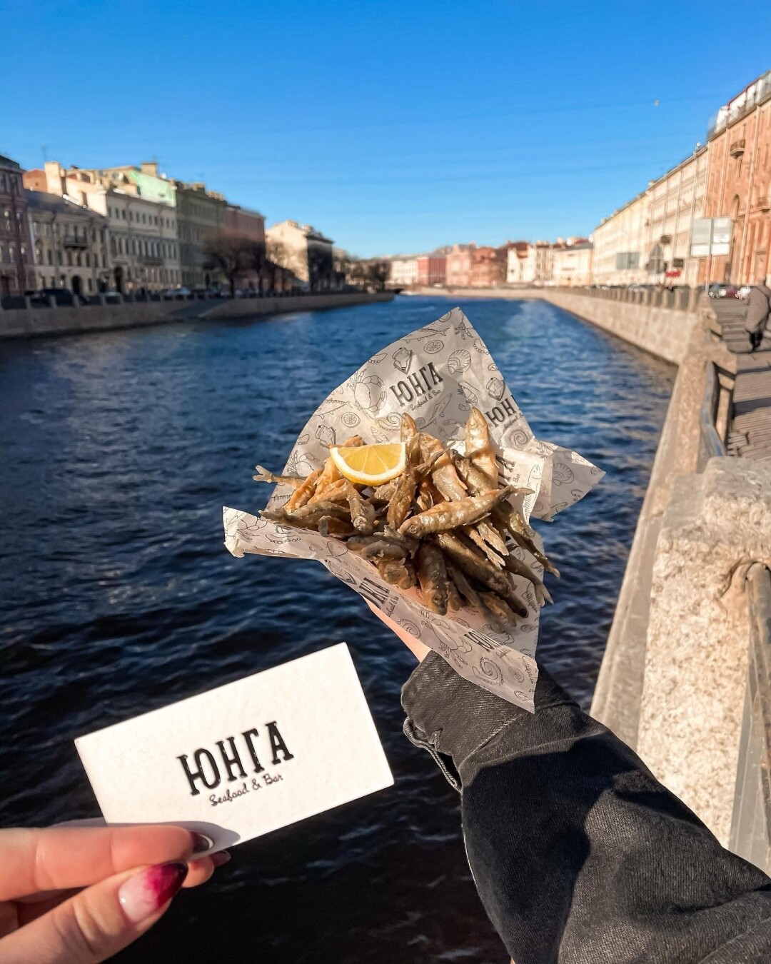 Жареную корюшку с соусом айоли можно отведать в кафе на Рубинштейна или взять на променад с собой!