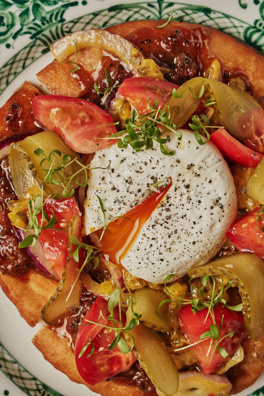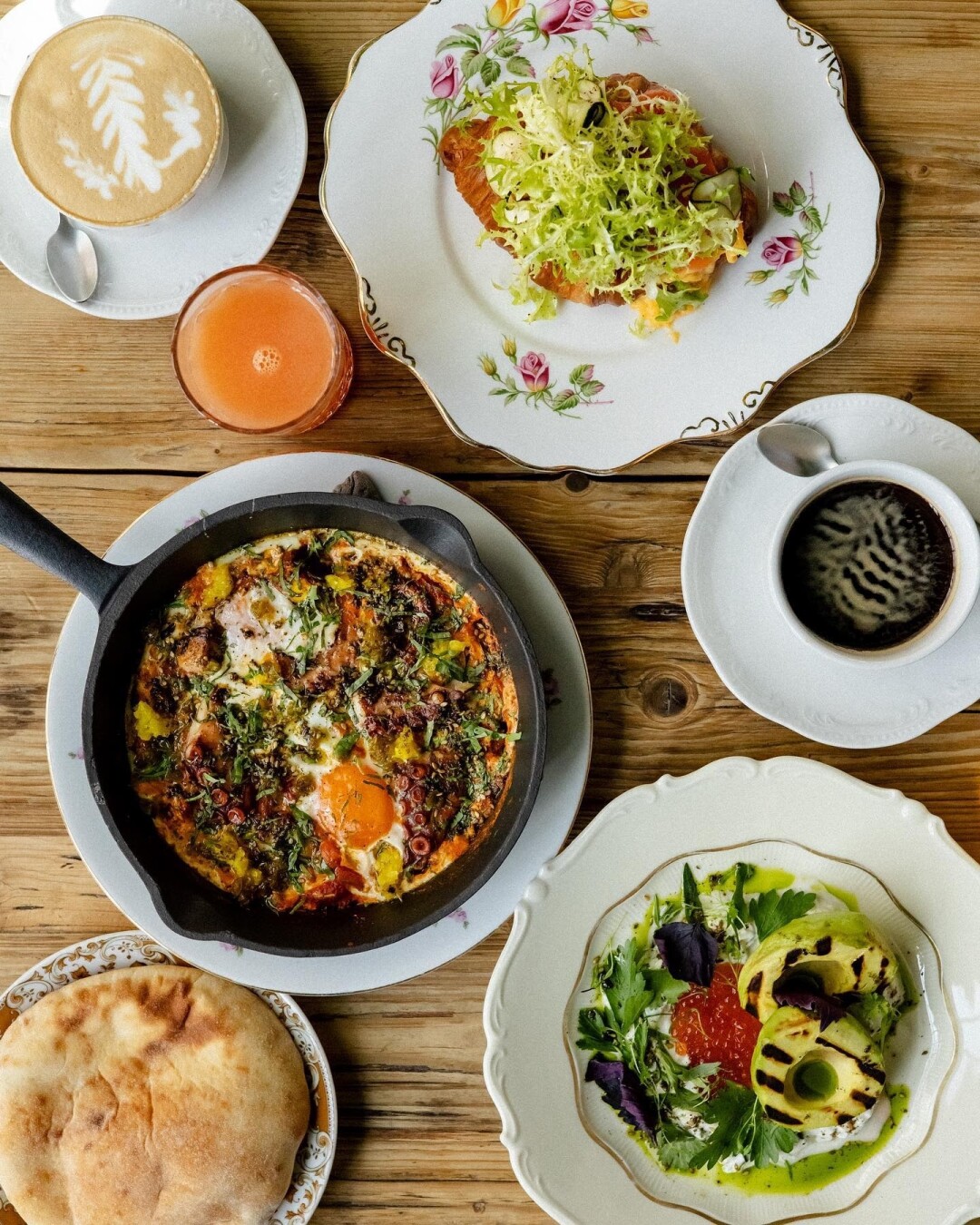 Идеальный день точно обеспечит шакшука с утра. В ресторане Антонио Фреза на Новой Голландии готовят традиционную, с осьминогом или зеленую шакшуку со страчателлой. Есть еще хала с глазуньей, авокадо и молодым сыром, Крок-Мадам на пите и дзадзики с печеным авокадо.