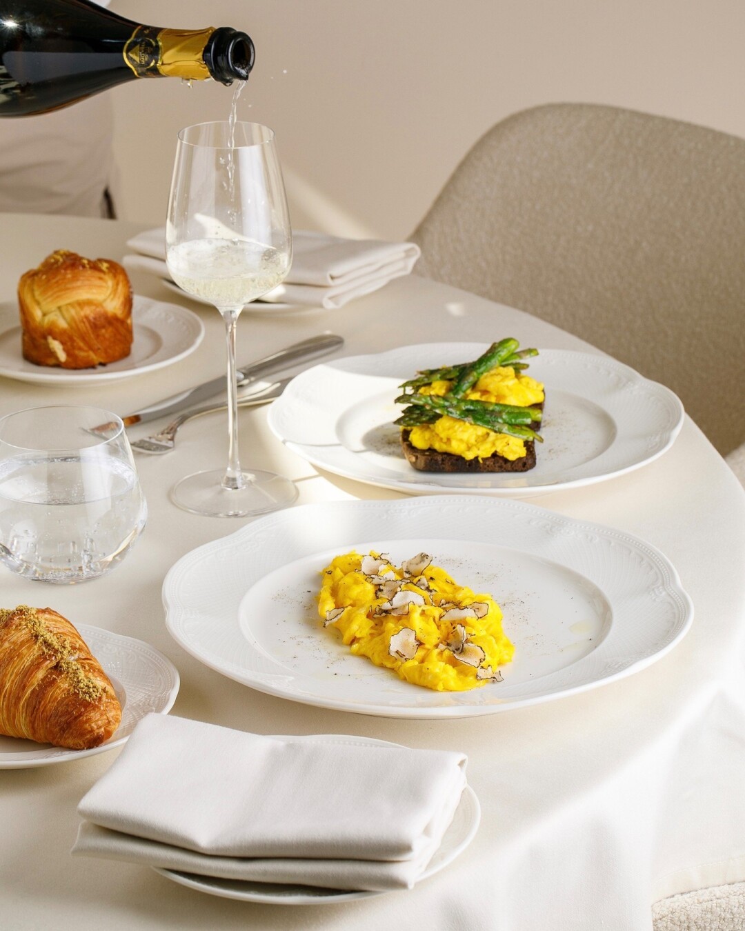 В новом ресторане бизнесмена Алексея Феликсова на Крестовском острове завтракам посвящено большое внимание! Здесь и сосиски из кролика, и каши (киноа с миндалем или пшеничная с крабом!), и блины, в том числе с томленой говяжьей щекой, яйца к которым конструктором можно добавить трюфель и страчателлу, томатную сальсу и тамбовский окорок. К бриоши можно заказать икру или лосось слабой соли, к тартину — докторскую колбасу и пашот.