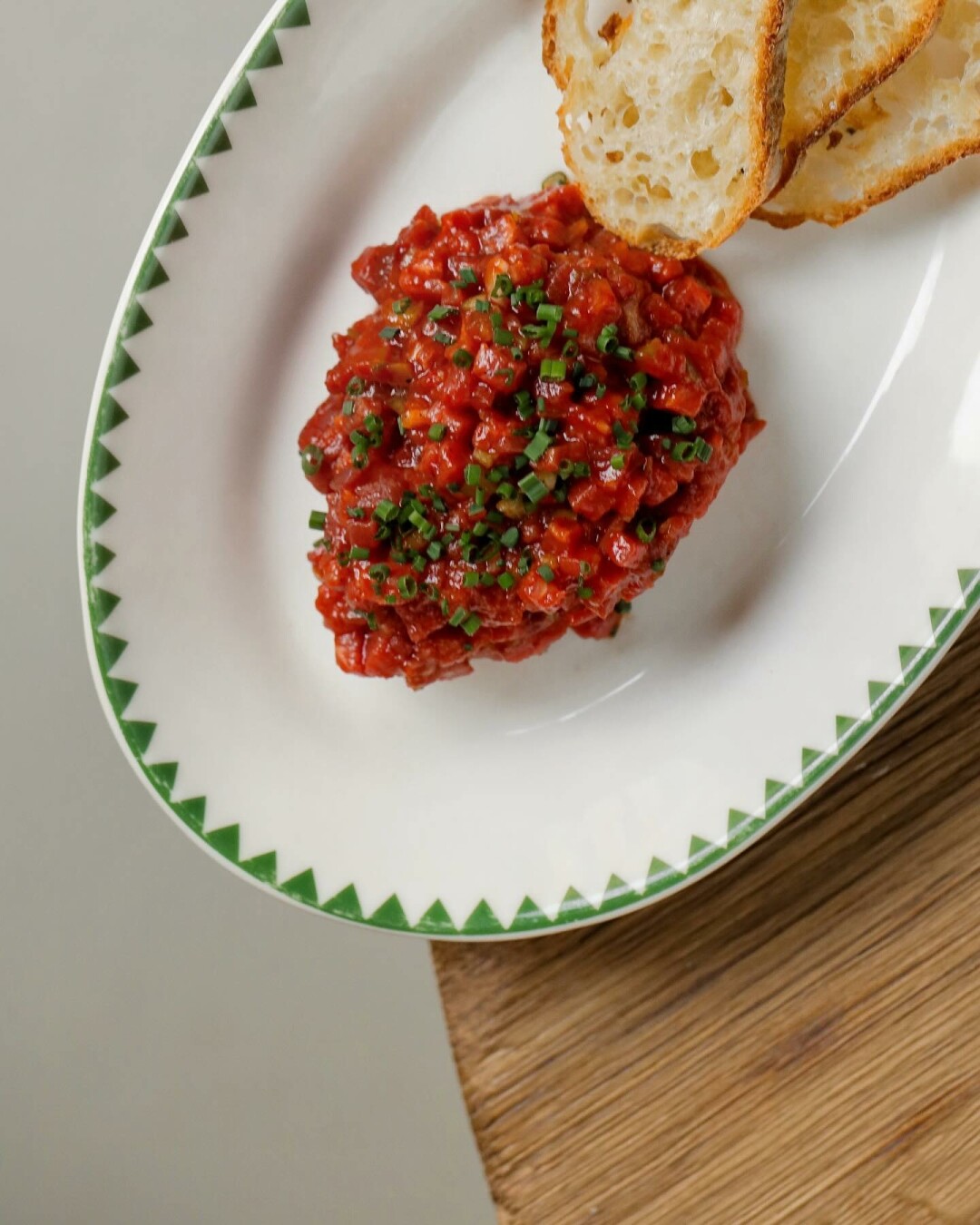 Кухню ставил Евгений Хахалев (проекты Ginza Project и Maison Dellos, Delicatessen) – внимательный шеф и поклонник zero waste. Пробуйте тартар из говядины с айоли, дикий средиземноморский сибас, целиком запеченный на гриле, и корейку карачаевского ягненка.