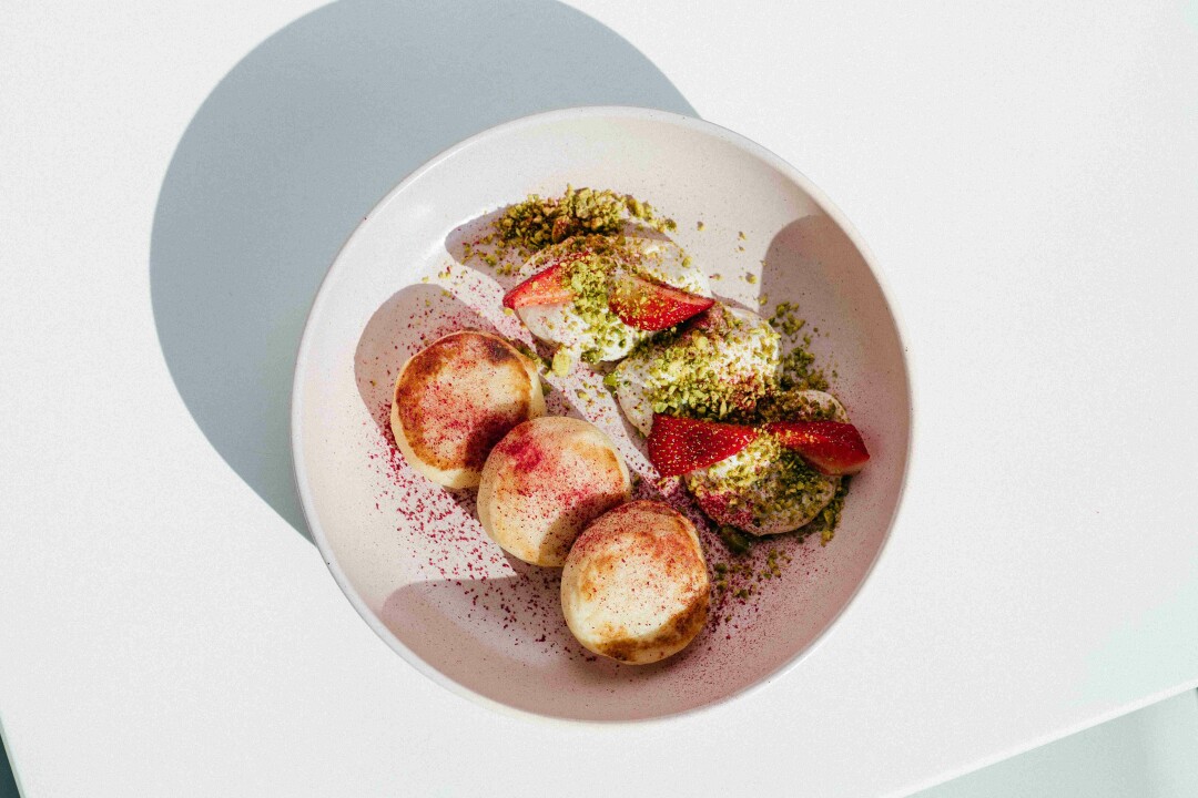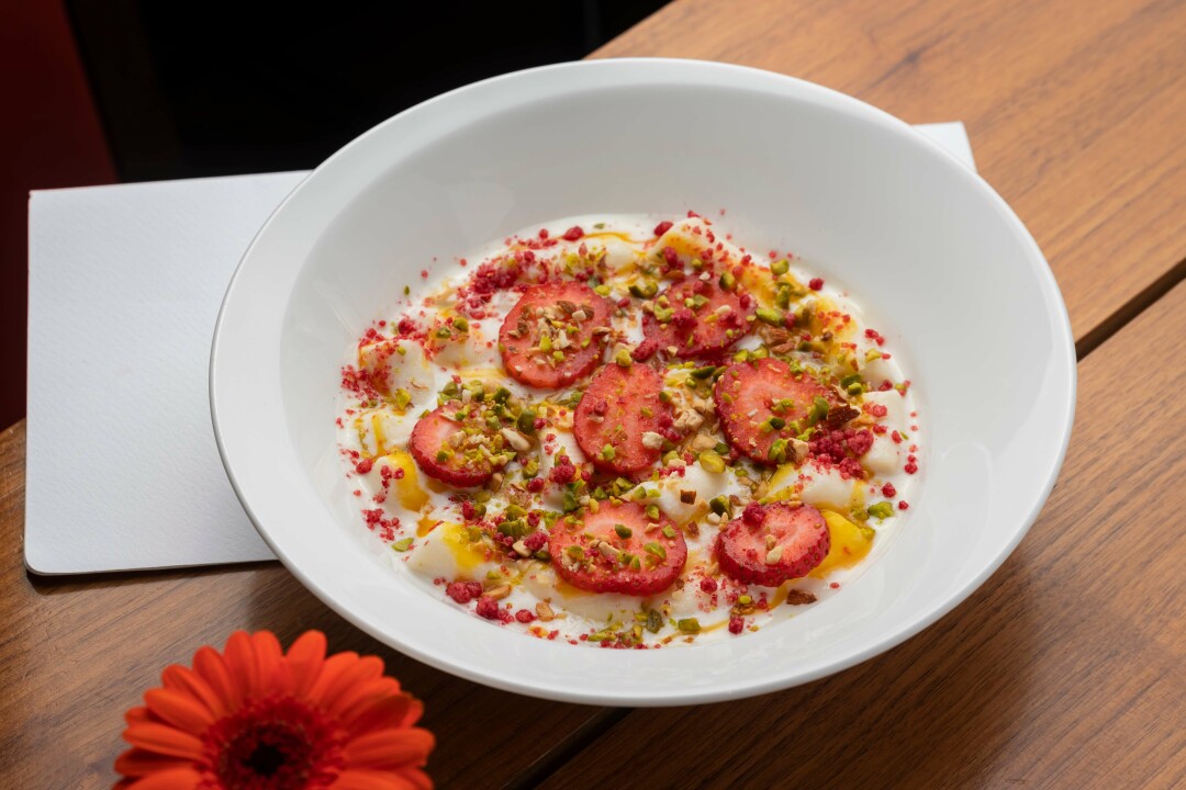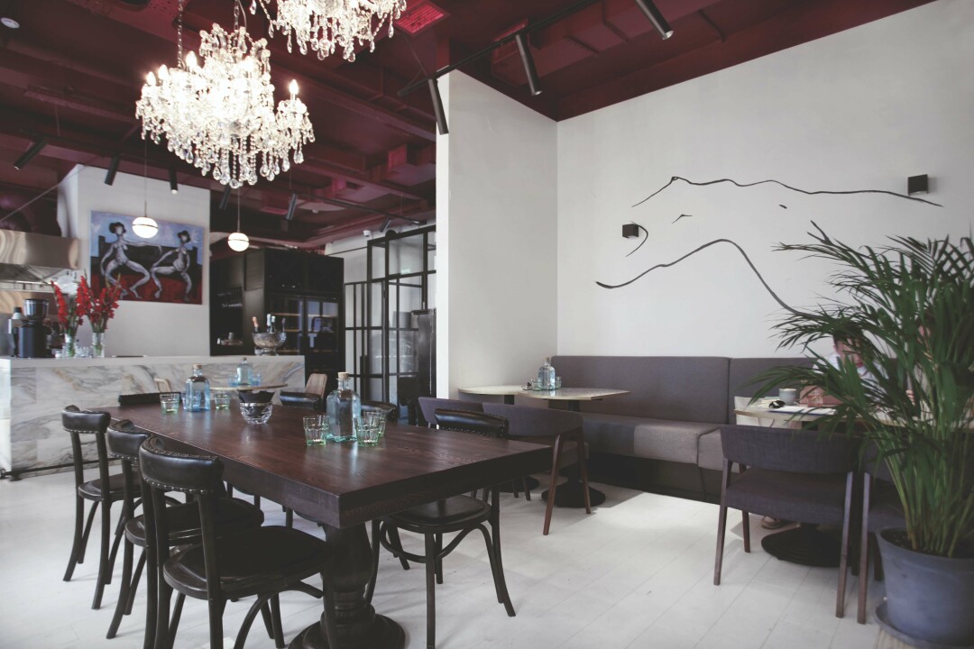 Ресторан называет себя италоливанским, но с утра здесь царит полный космополитизм. В меню яйца бенедикт, сладкие и соленые, на манер французских крок-месье и крок-мадам, бельгийские вафли, круассаны, сырники, овсянка и фирменное семейное блюдо от шефа дружественного ресторана «Мама Тута» Гии Хучуа: ленивые вареники, которые подают либо со сметаной и тутовым вареньем, либо с кокосовым молоком и сиропом из фиников.