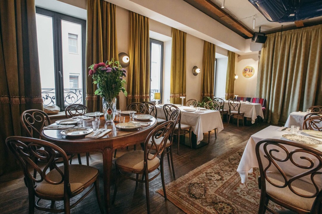 В уютный, камерный винный бар во дворах Покровки можно заходить прямо с утра. К бокалу игристого предложат зерновой хлеб с солодовым маслом, галету с томатами, страчателлой и оливками, бенедикт на круассане, сам круассан с вареньем и взбитым маслом, омлет с мортаделлой или маслом белого трюфеля, карамельный чизкейк и шоколадный торт с крошкой какао.