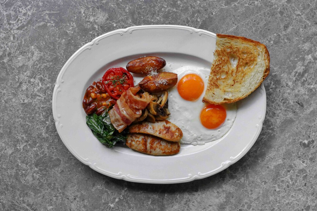 Авторский ресторан Глена Баллиса стремится понравиться всем завтракающим. Во-первых, возможностью присесть буквально у печки, во-вторых, достойной картой игристых и не только. В-третьих, размахом меню: сырники и творог с медом, всевозможные сэндвичи, тосты, бриоши и даже бургер. Есть лепешки, каши и омлеты/скрэмблы/глазуньи. А еще — солидный список добавок и приправ, которыми можно дополнить любое блюдо: яйца, овощи, икра, сосиски, варенья, орехи, соусы, трюфели.