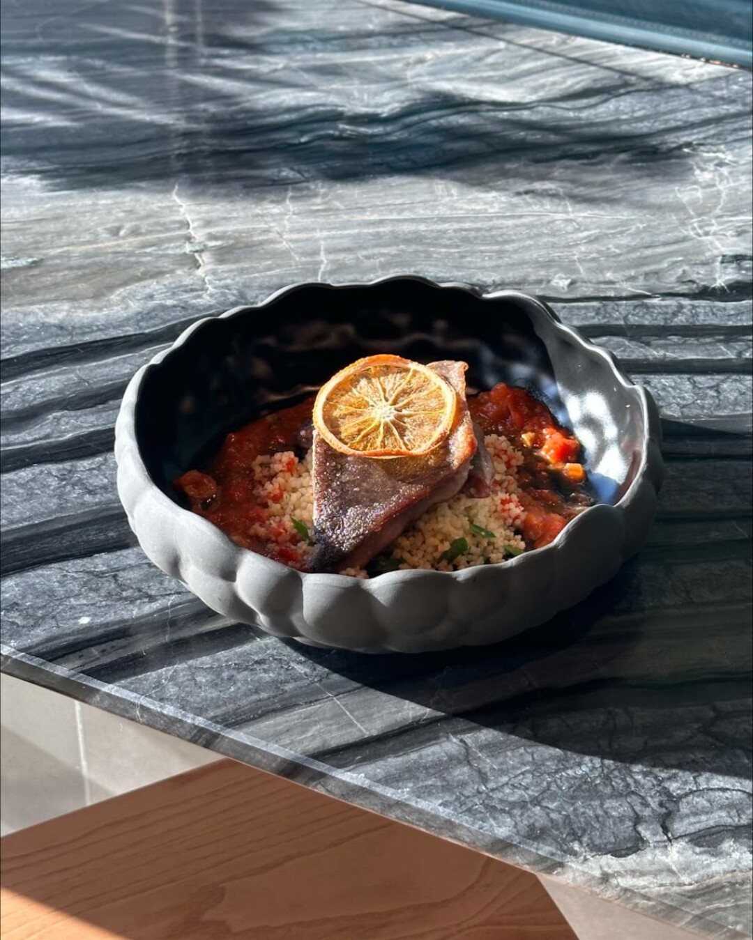 Автором «морского» меню стал бренд-шеф Филипп Ваганов. Домашний хлеб, большой объем специалитетов и сыровялов. Главную роль занимают морепродукты и рыба: террин готовят из щуки, четыре вида салата с тунцом, нельмой горячего копчения, форелью и топленым творогом, а также — зелёный с крабом и красной икрой, а в горячем — сом (редкая рыба!) с пряным кускусом, сезонная корюшка и биточки из щуки с пюре.