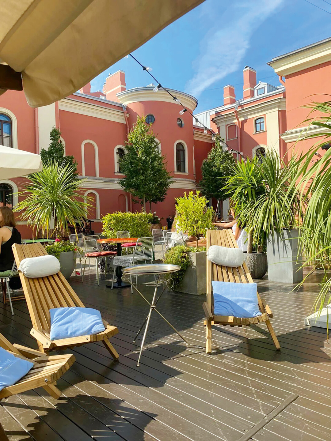 Террасинг в Петербурге — главный сезонный квиз: садж под Вантовым мостом и слэш-коктейли во дворе-колодце, голубчик у Стрелки и квасной спритц в обнимку с Александрийским столпом.