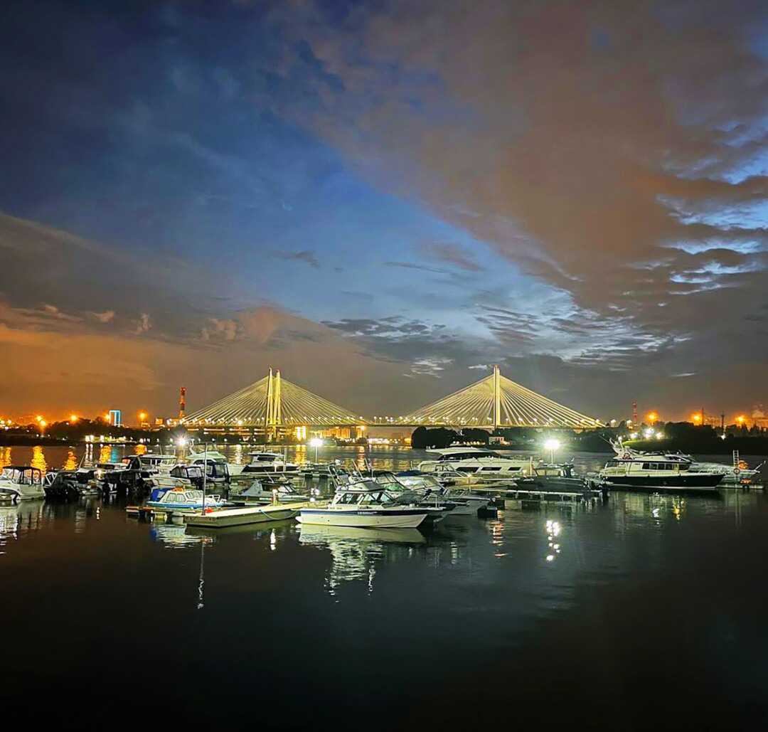 Хотите собрать сердечки под фото в соцсетях? Не поленитесь доехать до Рыбацкого в кафе на территории яхт-клуба «Восточный»: швартовка до 6 часов бесплатно — ну вдруг пойдете на своем катере. Хачапури и паста, садж и шашлыки — еда в рамках нормы, а вот такого выдающегося и необычного вида на Вантовый мост нет нигде в Петербурге.