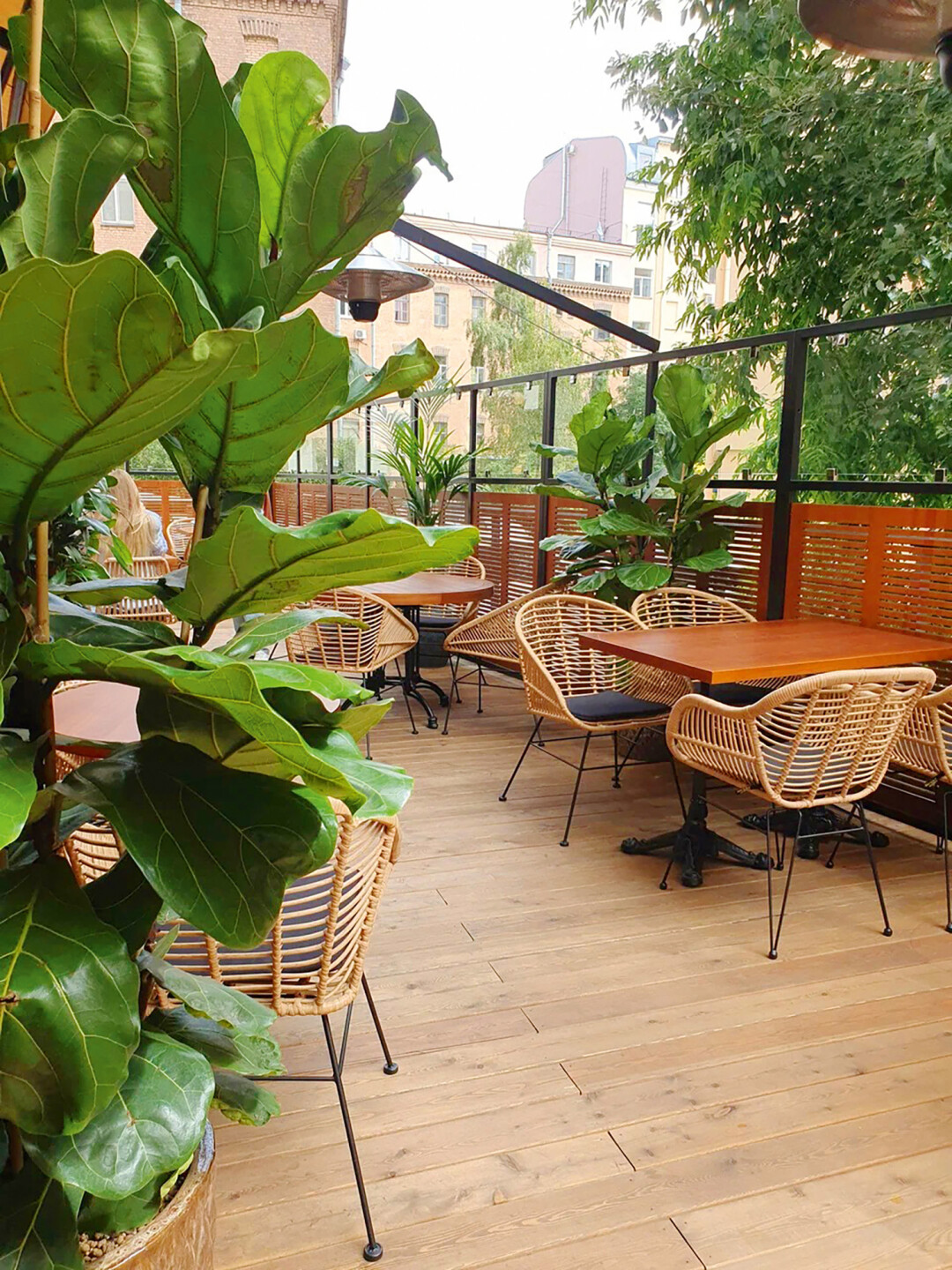 Пока парк Тучкова буянит только в планах, в районе «Спортивной» с зеленью не густо — поэтому от сердца отрываем ноу-хау: во дворе у Giusto есть кавайная терраса с пальмами и фонариками — так с фасада делового центра и не угадаешь. Идеально для пит-стопа на крудо из лосося, пиццу пепперони и киви-апероль.