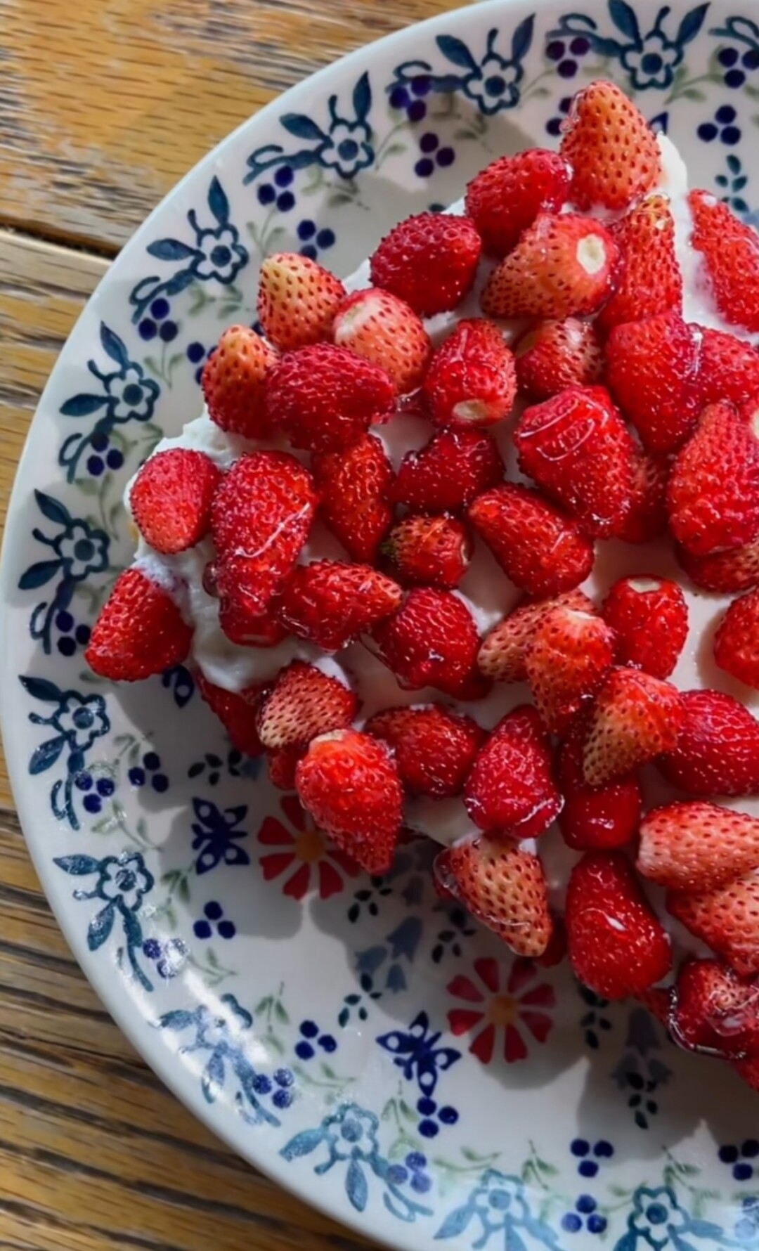 Земляника — это любовь! Пробуйте пирог со свежей ароматной (лесной!) ягодой, кремом из сливочного сыра и легкой песочной основой с добавлением миндальной муки.