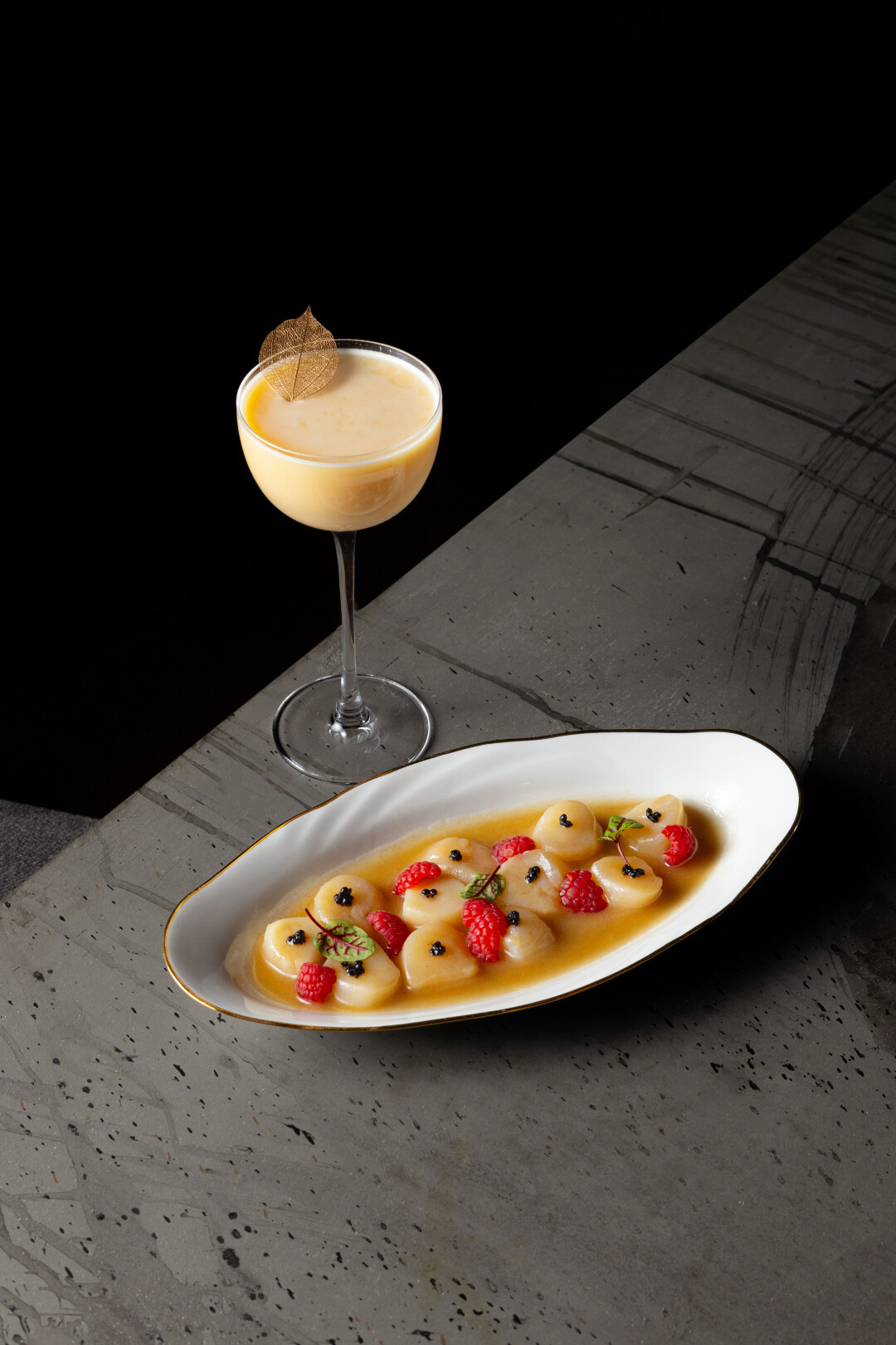 Шеф-повар Алексей Пестряев с командой в меню определили и арбуз с томатами и брынзой, и сорбет из крыжовника, но наш краш — севиче из гребешка с малиной.
