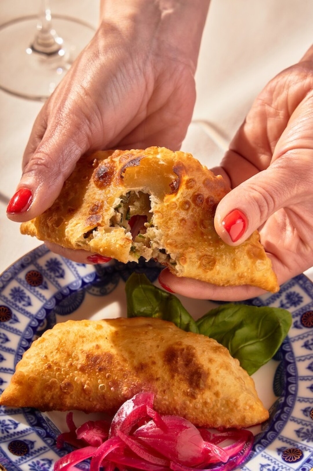 Где еще можно встретить абрикосовые косточки внутри чебурека? Гастрономический вариант любимого стритфуда, в начинке которого еще индейка, эстрагон и розовое вино, ищите в миниатюрном ресторане блогера Каримы Уразбаевой.