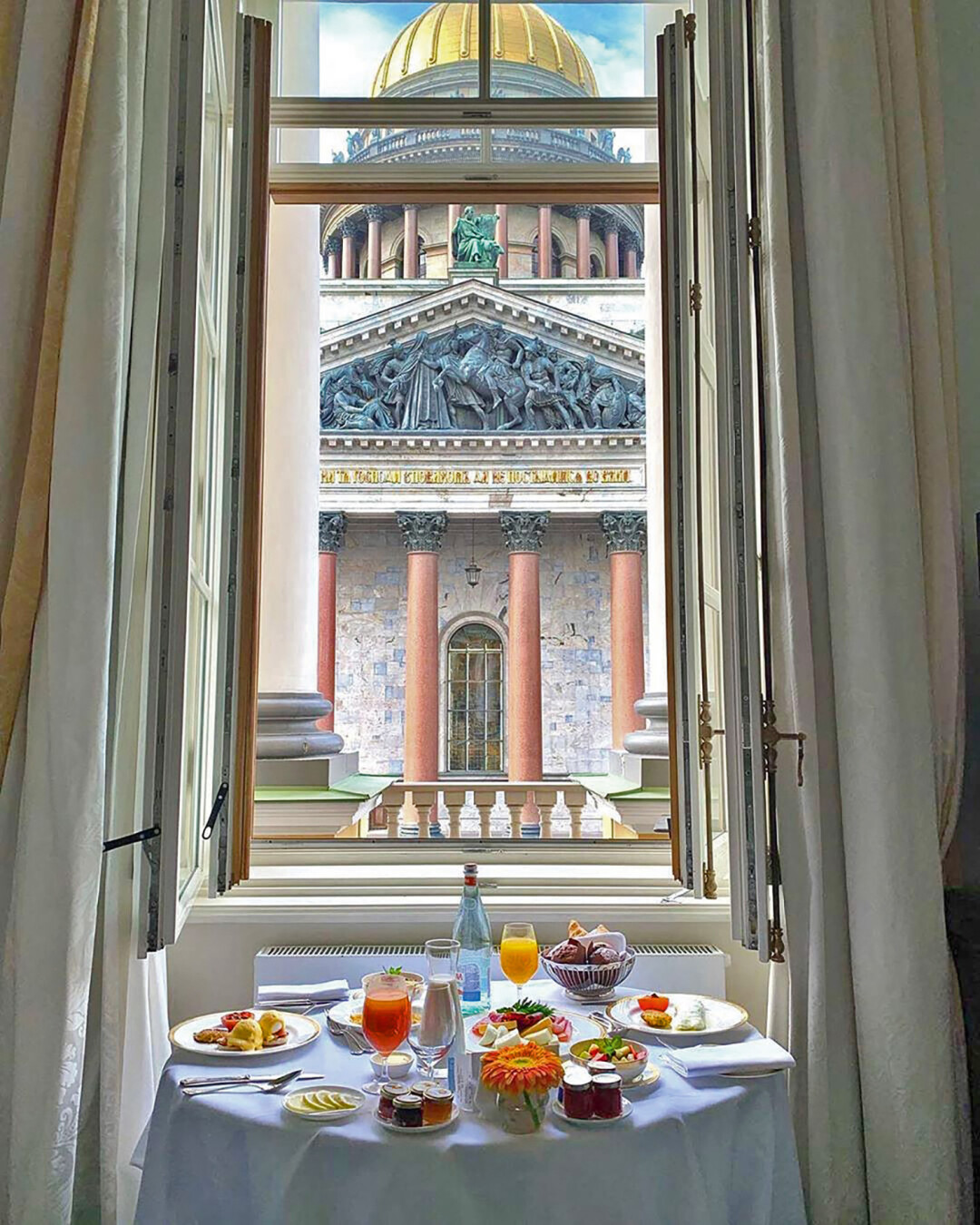 Звезда кино и место силы петербуржцев (и гостей нашего города!). Завтрак на террасе с видом на Исаакий в королевском люксе, гениальный негрони и