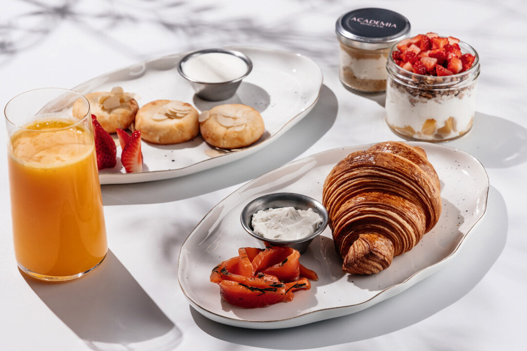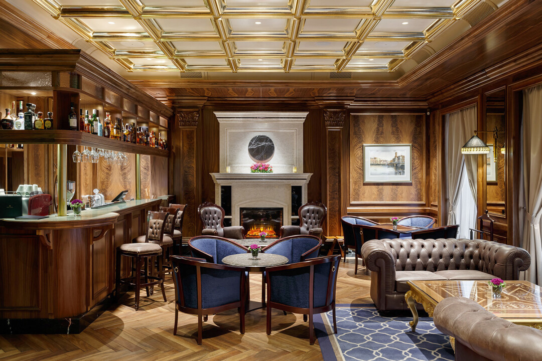 Местному Academia Bar досталось самое уникальное пространство в бутик-отеле — это кабинет Шувалова: статский советник и земский деятель часто работал в стенах своего особняка, так что уникальный плафон, декорированный кессонами с розетками тончайшей работы, — отреставрированный! свидетель истории Петербурга. А если вы забронировали номер в Academia Особняк Shuvaloff на медовый месяц, можно не выходить из комнаты и заказать в номер «Завтрак графа и графини» или «Завтрак князя и княгини» — сырники на рисовой муке с миндалем, круассаны на сливочном масле с форелью и домашние десерты.