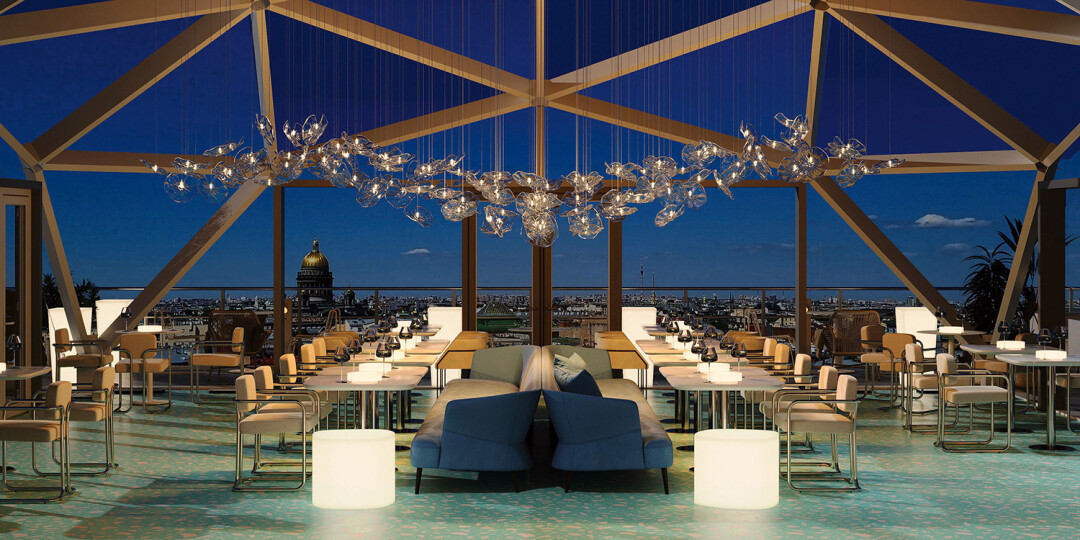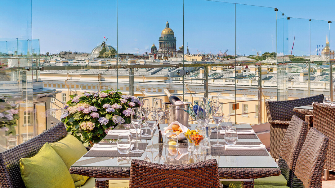 Башня «Лахта Центра» и Исаакиевский собор, зелень Юсуповского сада и Адмиралтейские верфи — обзорную экскурсию по всему Петербургу можно провести не сходя с крыши отеля «Амбассадор». Когда-то здесь была вертолетная площадка, на которую приземлялись министр иностранных дел Сергей Лавров и Хиллари Клинтон. Сейчас — поп-ап-бар (и летняя терраса бара «Консерватор»!) со стеклянным куполом, круговой панорамой, руф-топ-вечеринками и самыми фовистскими закатами в городе.