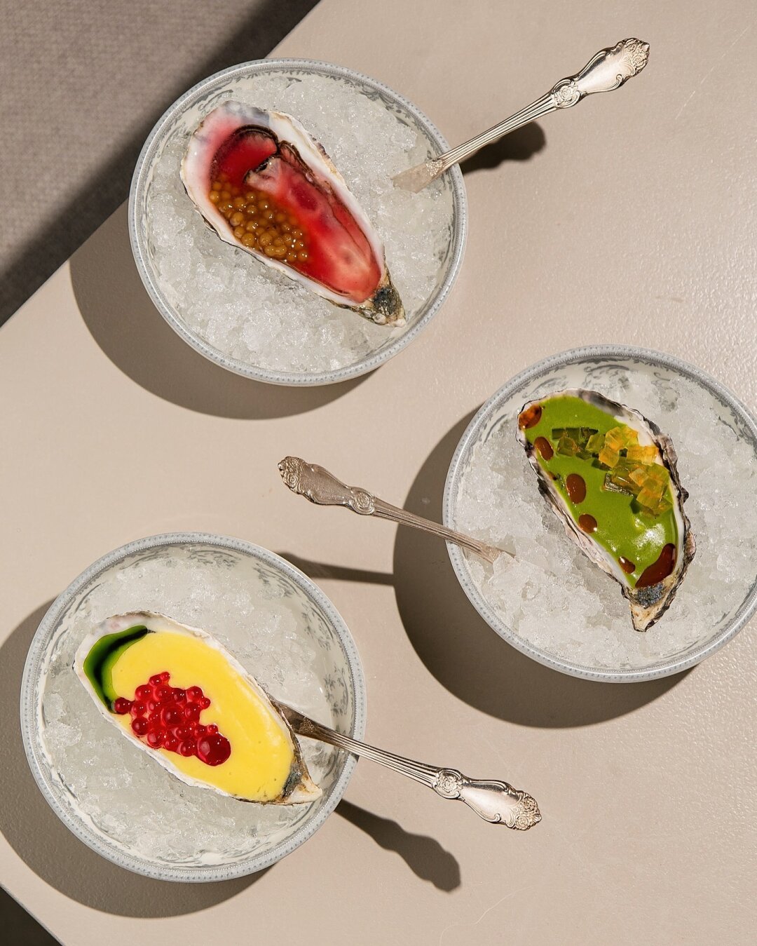 В воскресенье на террасе ресторана Futurist состоится богемный бранч с шампанью от винной компании À la volée и устрицами в кастомных луках от шефа Алексея Алексеева: будь то маринованная тапиока, или крем из базилика и лимонное желе, или гаспачо из желтых томатов и жемчуг из красного лука.