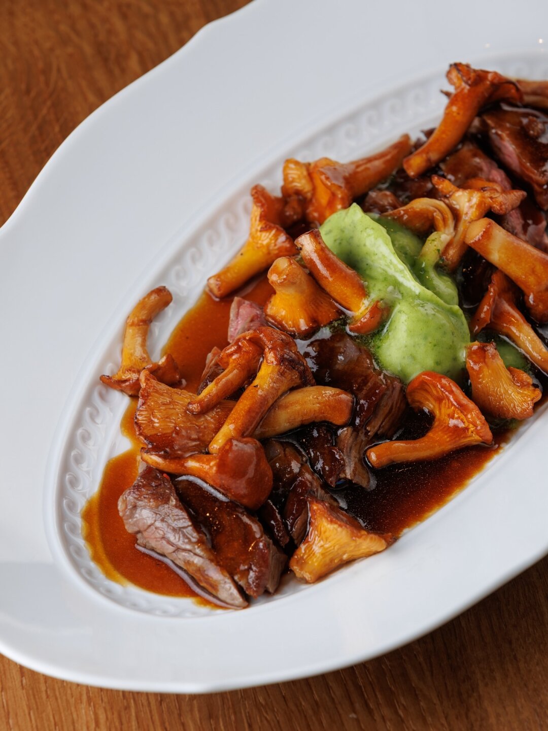 Сезон лисичек не обошел стороной и мясной ресторан команды Duoband. Шеф Андрей Ковалев украшает рыжими грибами голландскую вафлю с мортаделлой, татаки из говядины с травяным маслом и молодые цуккини в сметане, а ещё запекает с ними целую лопатку ягненка.