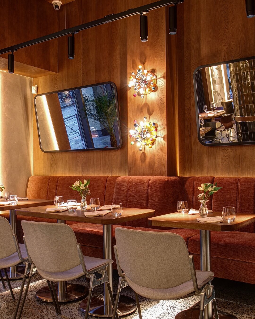 Виниловое бистро силами шефа Евгения Подсевалова дало своему меню летнего стиля: карпаччо из розовых томатов дополняют страчателлой и дыней, гребешка в сливочном соусе освежают черешней, айсберг жарят как стейк и акцентируют анчоусами, а к спагетти добавляют краба, соленые лимоны и маринованный артишок. Сопровождать шеф-бармен Александр Молчунов предлагает коктейлями, вдохновленными теорией архетипов Юнга: в ней можно найти такие сочетания, как банан-топленое молоко, смородина-можжевельник-какао, или чили-мед-мескаль.