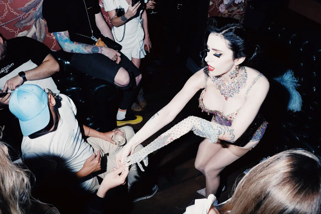 Маша: У нас часто выступает группа Ugli — но это по большому блату. (Смеется.) Параллельно я занимаюсь продвижением ребят, выступая в качестве продюсера. Это петербургский бэнд: Даша Трушек — бывшая участница проекта «Песни» на ТНТ, Андрей Чубис— из Беларуси, в детстве пел в цыганском хоре. Сейчас привносят в музыкальное поле элементы фолка и электроники. Каждую субботу в «Адище» раздают эстетику девушки с танцевальными номерами из бурлеск-кабаре «Летучая мышь» в стразах, перьях, кружевах, а иногда и без них. (Смеется.) Идеальная находка! Спасибо нашему арт-директору Нике Кораевой.