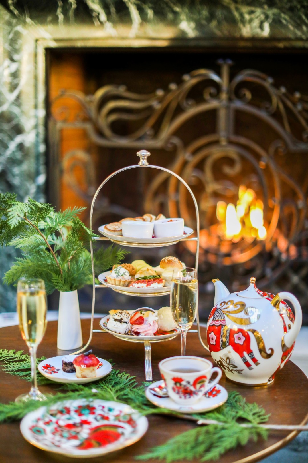 В кафе «Мезонин» все предновогодние дни можно дегустировать праздничный сет «Рождественское чаепитие». С бокалом розового игристого на серебряной этажерке подается ассорти из семи видов мини-сэндвичей, в том числе с лососем, козьим сыром и осетриной горячего копчения, слоеные пирожки и миниатюры зимних десертов от шеф-кондитера. Столь же венчает классический чайник в русском стиле от Императорского фарфорового завода.