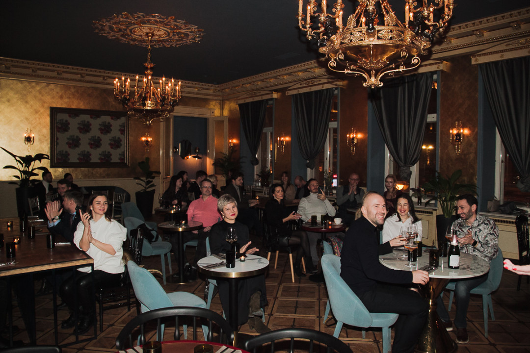 18 февраля состоялся званый ужин в русском стиле: совместными усилиями «Собака.ru», винного ресторана Merula, икорного бара Caviar Russia и El Copitas Bar (№27 в рейтинге The World's 50 Best Bars) 40 гостей провели снежный петербургский вечер в золотых декорациях Доходного дома К.П. Палкина с черной икрой и коктейлями. Рассказываем, как это было!