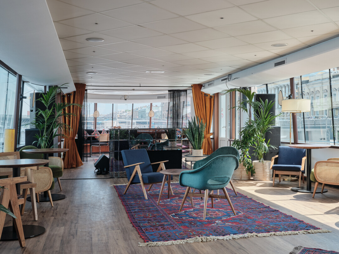 В мае команда сделает акцент на нижнюю палубу, где будет работать специальное меню от Руслана Закирова, бар, дневная и ночная музыкальная программа, салонные вечера с роялем и танцевальные вечеринки.
