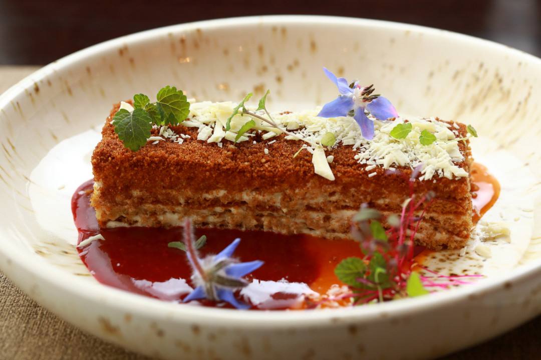 — Наши десерты — это большая гордость. Кроме медового кейка с соусом «Облепиховый бум» и стружкой белого шоколада из меню «Сезон: Лесной», я рекомендую попробовать на сладкое «Валькирию» — мусс из двух видов шоколада с соком лайма и ликером триплсек — и наш фирменный мусс «Линдфорс» на основе взорванной гречи, которая карамелизируется тростниковым сахаром.