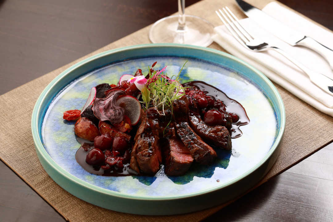 В меню «Сезон: Лесной» вошли салат, в котором язык теленка сочетается с тигровыми креветками и имбирной крошкой, персики гриль-демиглас с сорбетом из копченого манго, свиная грудинка со свекольным пшенотто, шатобриан из мраморной говядины с карамельно-ягодным демигласом и твист на классический медовик с гелевым соусом на базе облепихи, меда и табаско. На десерт можно заказать ЗОЖ-конфеты ручной работы: маковая с орехами и морской солью, злаковая с черносливом, кокосовая с курагой и апельсиновая с коньяком.