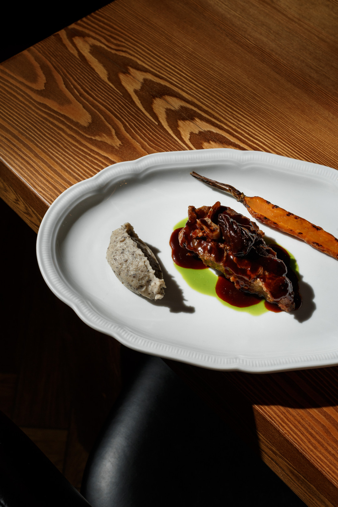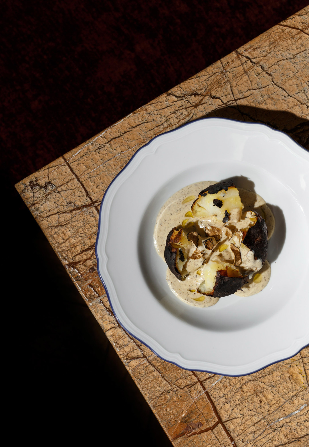 Титульного блюда в меню под десяток версий: порции пасты приятные. Допустим, за тальятелле с крабом просят 890 рублей — это тазик с рукодельной пастой и крабом, переложенных тонко наструганным чили. Далее в меню — ягненок, приготовленный с помощью барбареско; цыпленок гриль под соусом из зеленого перца; запеченный в углях картофель в густом трюфельном соусе patata tartufata; густой томатный papa pomodoro. Самую смелую импровизацию творят с пиццей — готовят во фритюре и называют pizza pazza, «сумасшедшая» по-итальянски; для тех, кому нужен менее джанкфудный вариант, на днях введут классическую римскую. Чизкейк тарта ди формаджио вам вынесут целиком, сами скажете, сколько резать в граммах. Если возьмете пухлые профитроли, готовьте гаджеты, при вас их польют горячим шоколадом.