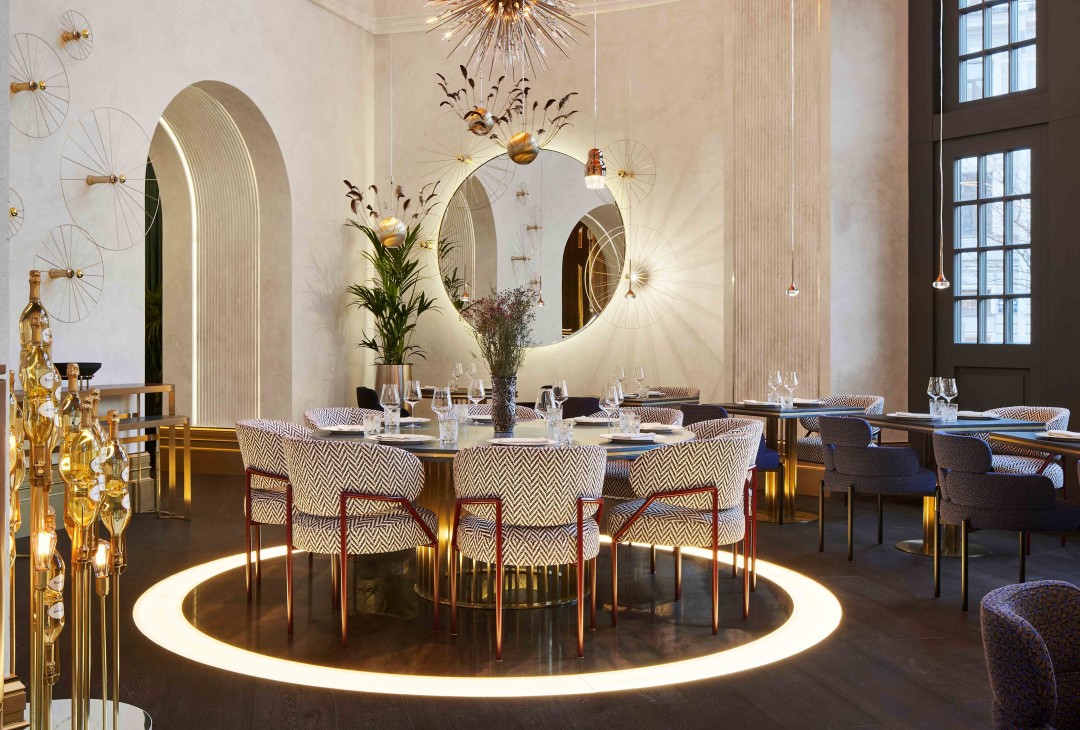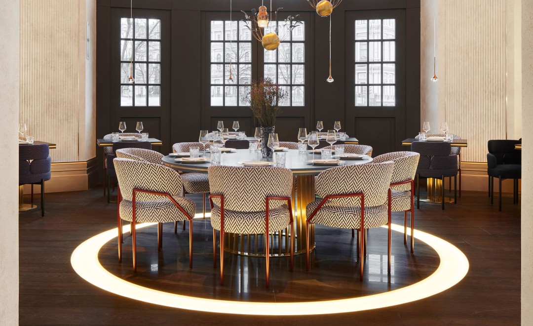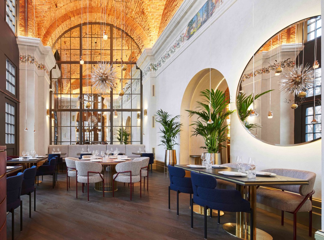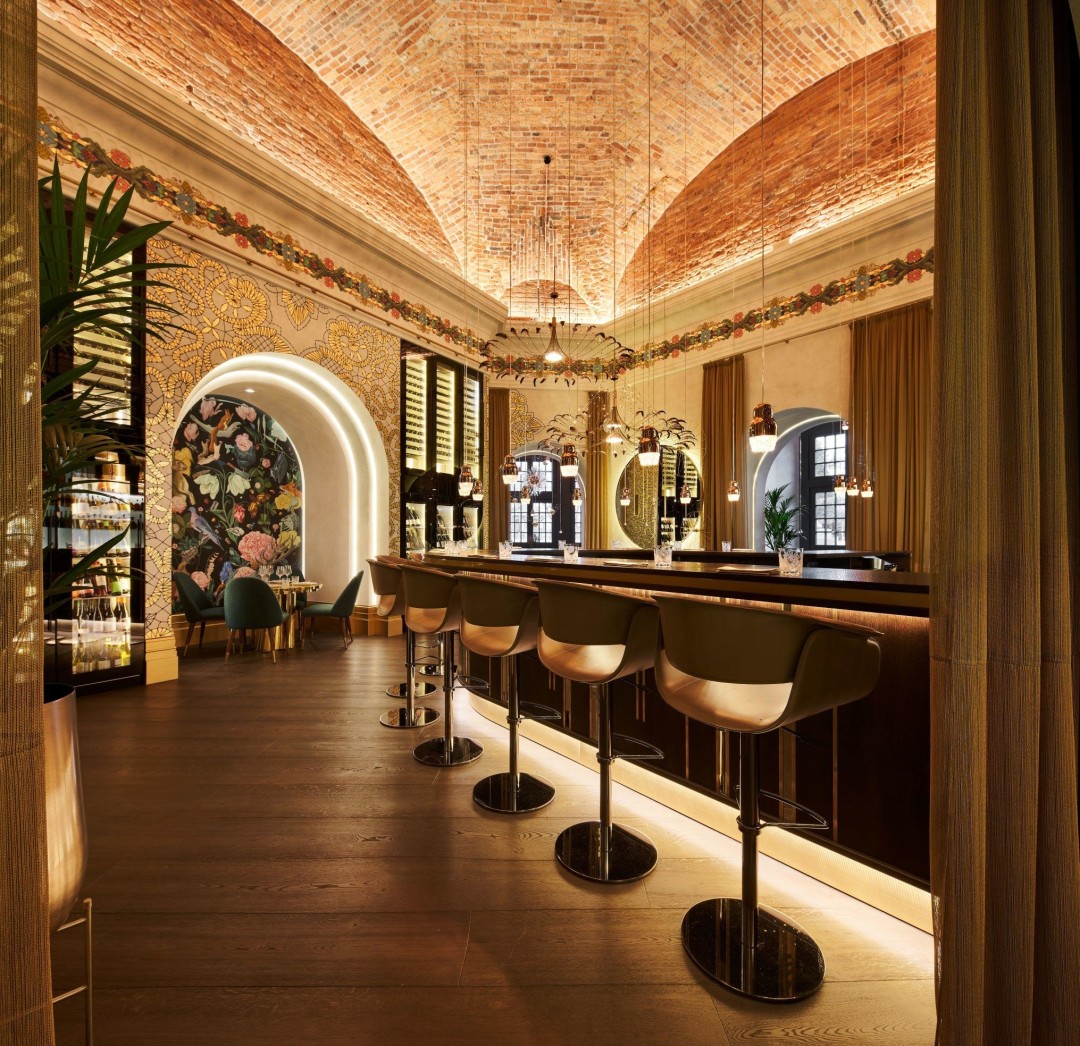В Cococouture со входа захватывает дух — красотой приподнятой, но не подавляющей. Торжественность обеспечивает, во-первых, подсвеченная кладка восьмиметровых сводов здания «Дома 12», возведённого в середине XIX века по проекту Саввы Чевакинского и Жана-Батиста Валлен-Деламота. Во-вторых, еще более исполинские — одиннадцать метров! — арочные окна, которыми ресторан выходит на Крюков и Адмиралтейский каналы.
