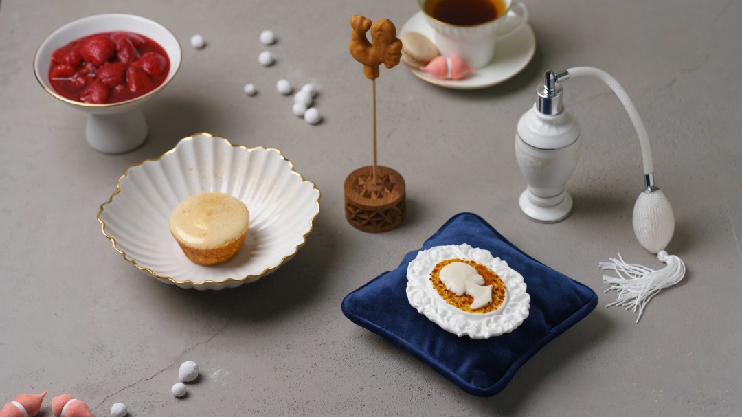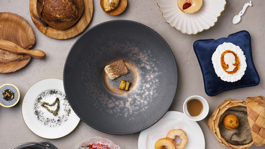 Слово «меню» применительно к сету в Cococouture даже не придёт на ум: это гастрошоу, аттракцион высокой кухни. Лейтмотив как всегда у Игоря Гришечкина — родные вкусы, выхваченные из истории и из ностальгии, увиденные новой гастрономической оптикой или, наоборот, восстановленные в исконном виде. Если присмотреться к сету на предмет художественных приёмов, то первый — игра гастрономической формы и содержания. То, что в сете выглядит как пышки с Большой Конюшенной с бочковым кофе — это картошка с грибами. Пышки сделаны из картофельного теста и трюфельного крема, «кофе» — из грибного бульона. «Кура с гречей» имитирует печенье «Мария» в корзиночке из кружевной салфетки: оно сделано из гречневых чипсов с начинкой из фуа гра.