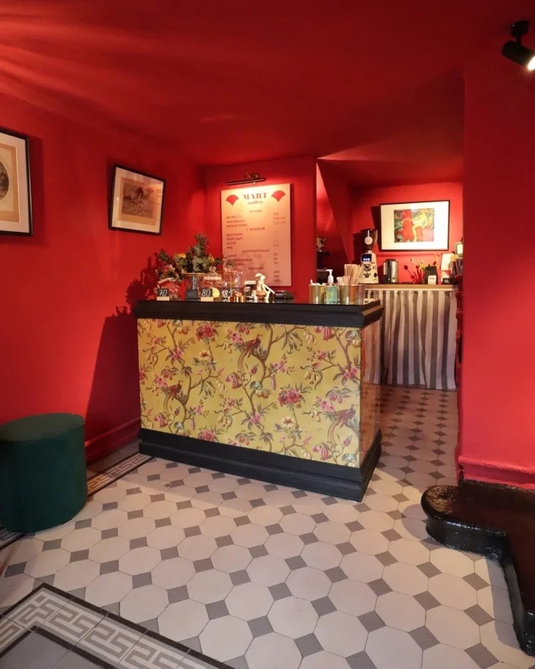 На Большой Пушкарской, 10, открылась миниатюрная дог-френдли кофейня Mart (всего для 5 гостей!) с красными стенами, отсылающими к «Твин Пикс», цветами и спешелти-кофе.