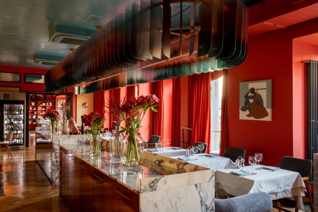 За широкой лакированной стойкой бартендеры смешивают сауэры с чили или идеальный «Беллини», в составе которого только просекко и пюре из белого персика (идеальную пропорцию искали месяц!). В баре также действует совершенно иное меню. Здесь в почете небольшие закуски вроде батата фри с айоли из маракуйи, креветок или фрито мисто с соусом из зеленого лука.
