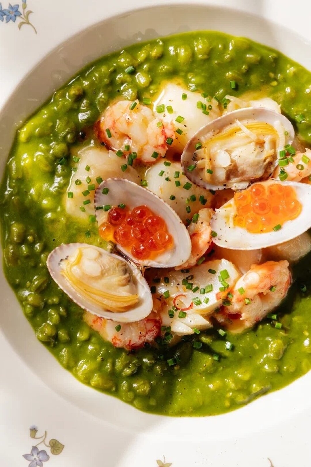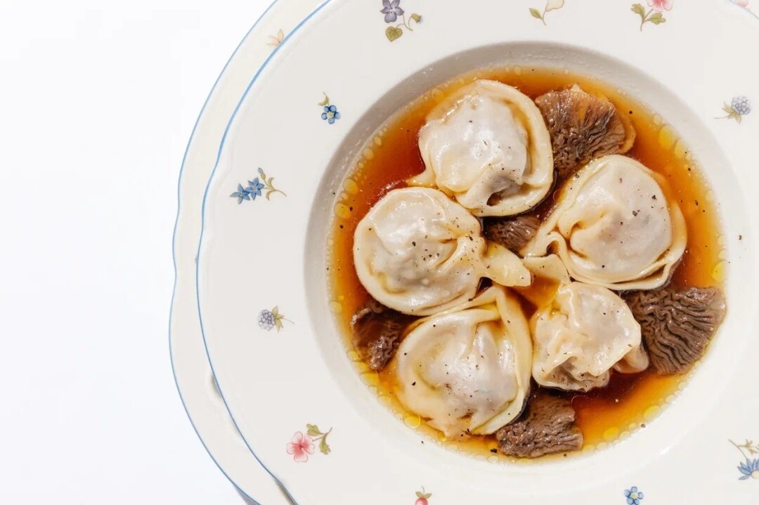 Владимир Чистяков описывает кухню «Ветра», как «российскую с примесью французской». Свое любимое блюдо — пельмени — готовит всегда с бульоном, независимо от начинки: морепродуктов или говядины со сморчками. В порции всего пять штук, но наполнение плотное и щедрое. Голубцы в савойской капусте подаются с грибным дюкселем и маслом белого трюфеля, пожарская котлета — из фарша черной трески, палтуса, креветок, краба и запанирована сухарями из бриоши, а наш скрепный оливье вместе с черной икрой укладывается на хрустящий гратен.