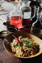 Аптечные рецептурные книги написаны исключительно на языке хинди, на котором экспортированные из северного штата Уттаракханд повара переговариваются с шефом Джимми Сингхом во время кулинарно-алхимических экспериментов. Здесь действительно простоту привезенных из Индии муки, бобов и риса превращают в гастрономическое золото лепешек, карри и бирьяни, томатно-ореховый, кокосовый или сливочный соус к которым даже на спор не разложить на исходные ингредиенты.