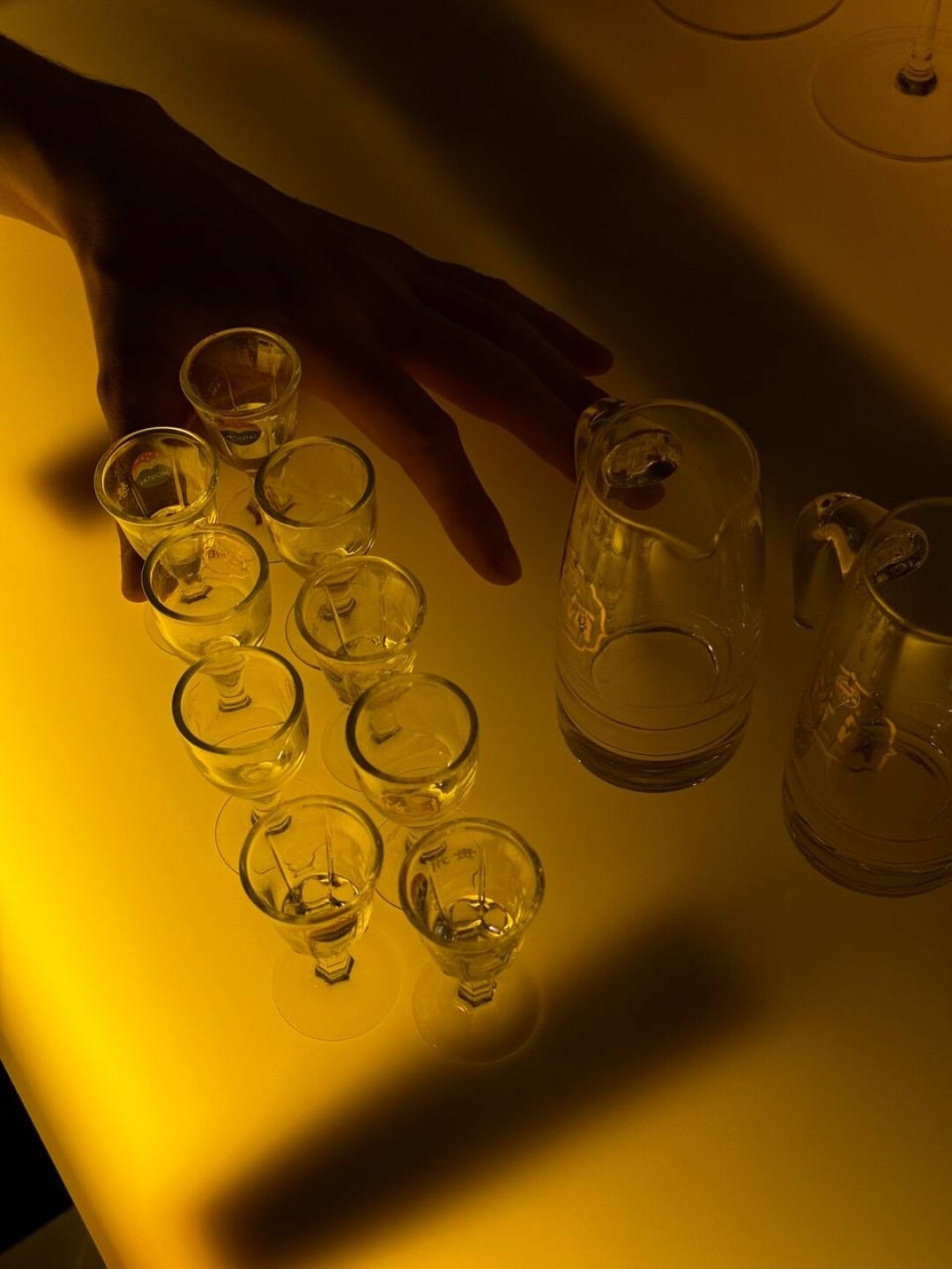 За напитки отвечает бар-менеджер Сергей Яковлев (экс «Художественный» и Bloom Bar в Сочи). Коктейльной линии, посвященной традиционному китайскому календарю, подыгрывает внушительная коллекция алкогольных азиатских специалитетов: байцзю (для него здесь предусмотрены миниатюрные рюмки объемом 15 мл), саке, соджу, умешу, сётю, виски из Японии, Китая и Индии, а также китайское вино. Некоторые коктейли готовят прямо на специальных барных тележках в зале с аквариумом.