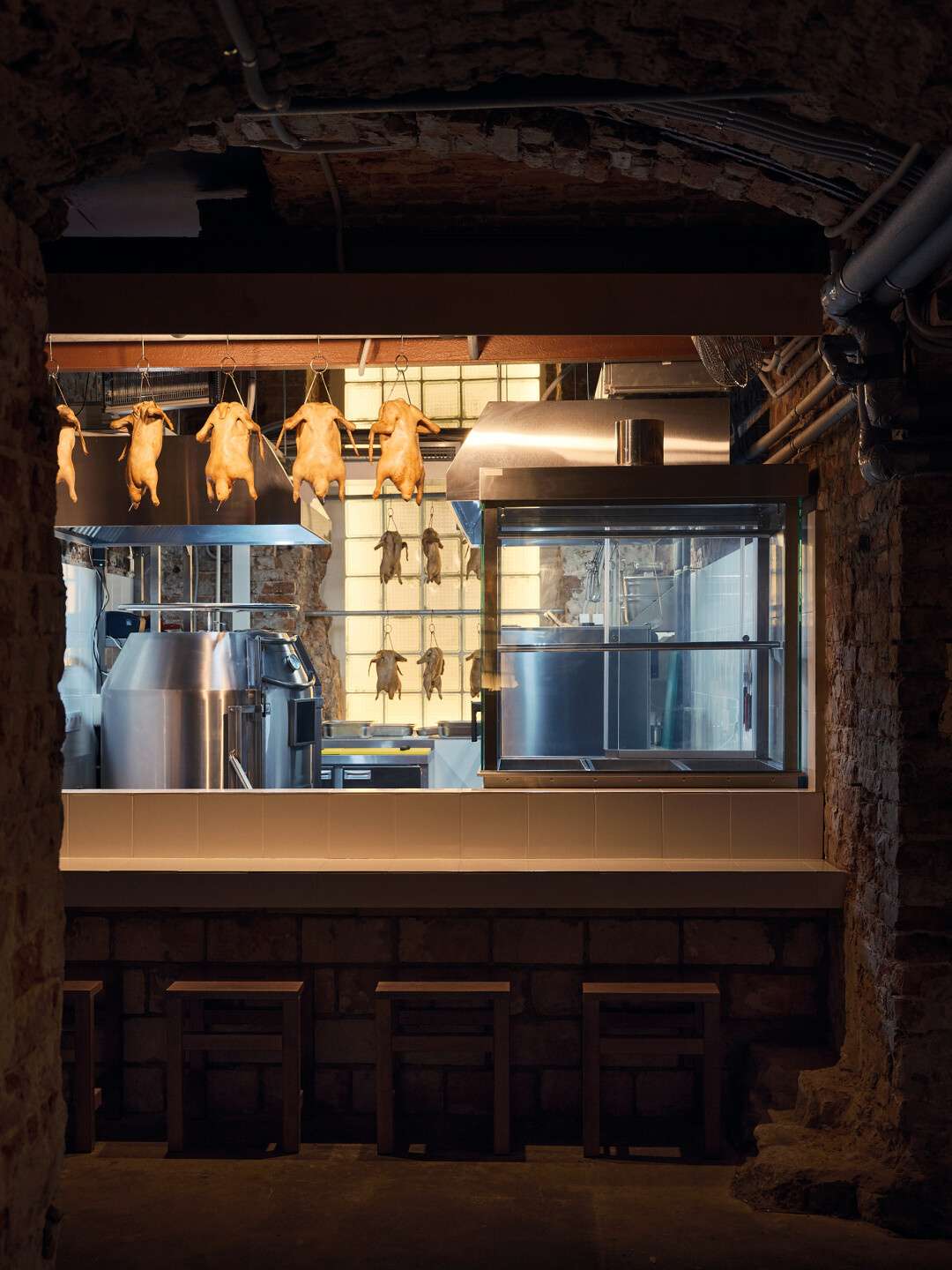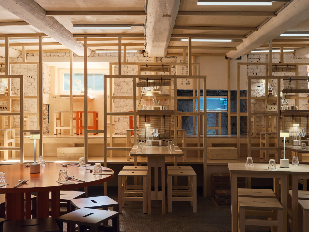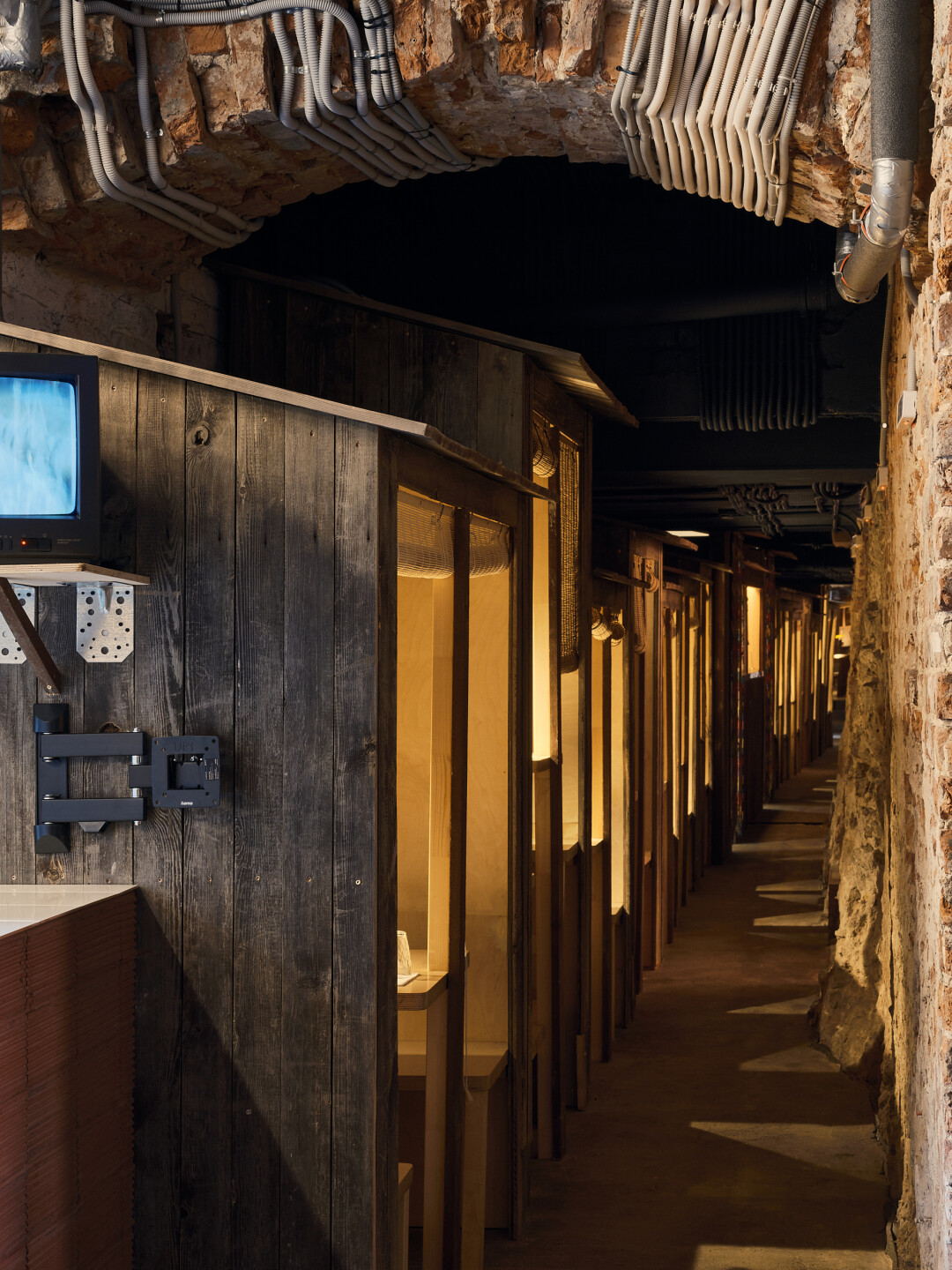 Одна сюжетная линия с чайна-тауном у прогрессивного фуди-сообщества вырисовалась не случайно! Все помещение — сплошной лабиринт кирпичных стен, где из узких коридоров ты попадаешь в скрытые пространства. Никакой отделки, только закрытые кабинки с бамбуковыми жалюзи (специально для интровертов!), темно-алые доски, опоры, необходимые при реконструкции аварийного полуподвала. В планах музея «Полторы комнаты» даже есть создание отдельной экскурсии, которую будут заканчивать именно здесь.