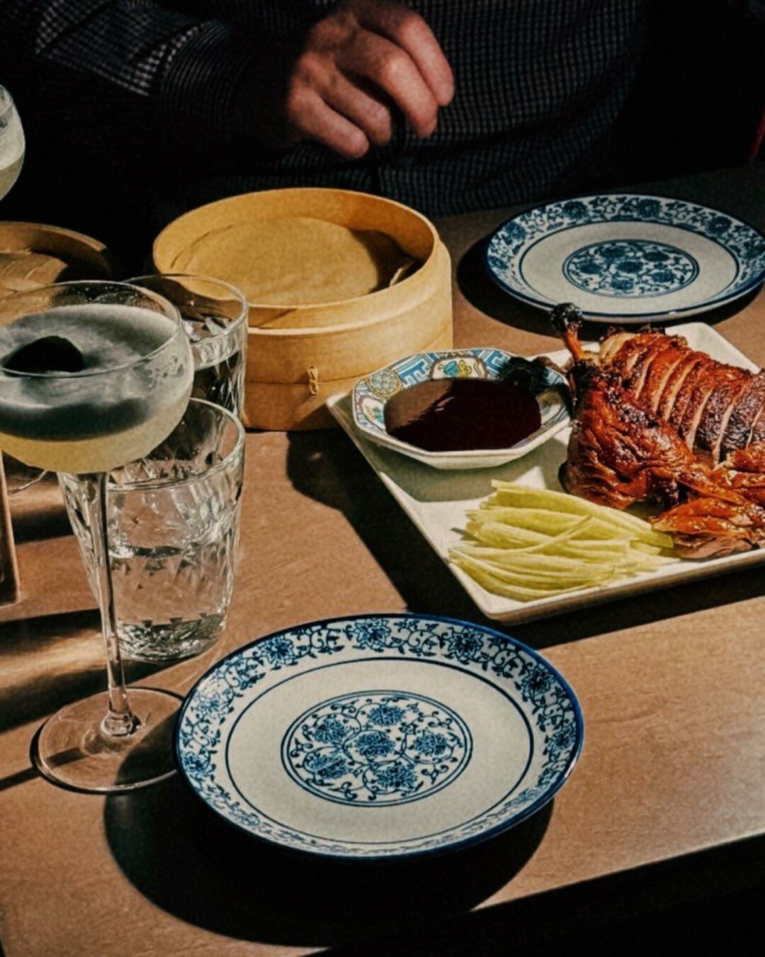 Заглавная веха «Пищи династии Минь» — цех по приготовлению утки по-пекински. Сначала два дня ее купают в соляном растворе, затем еще пару — в маринаде, после птицу вывешивают для вызревания на 7 дней, а в завершении ее выпекают в купольной печи, чем-то похожей на тандыр. Меню закусочной и бара пересекаются частично, но утка есть в обоих сценариях. Дополняют ее, по классике, паровыми блинчиками, соусом хойсин и овощами.