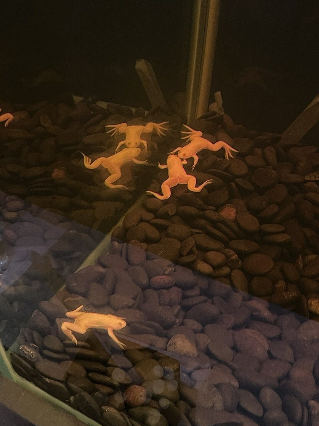 Пространство бара-закусочной организовал амбассадор направления «бумажная архитектура» Александр Бродский: он оформлял экспозицию музея Бродского. В сложное, узкое помещение кабинеты со столиками вписаны двумя уровнями с ловкостью мастеров оригами, а доминантой одному из залов служит аквариум с поющими розовыми лягушками.