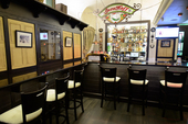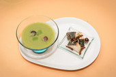 Весь проект ресторана сделан при деятельном участии харизматичного итальянца Винченцо Скуарчафико, который до этого в Петербурге работал в отелях Corinthia Nevsky Palace и Grand Hotel Europe. Его европейская кухня задумана в оригинальной подаче — «так, чтобы ни у кого в городе не было», и воплощение замысла удалось шефу на отлично. В крем-суп «Горохов» из зеленого горошка с мятой опускают черную треску, запеченную кусочками с маслинами и тимьяном — чтобы получить действительно впечатляющее сочетание сладковатого пюре со свеже-морским вкусом рыбы и пряно-кислыми плодами. Паста паккери утопает в сладкоовощном соусе из паприки и сыра пекорино и щедро пересыпана солоноватым копченым беконом. Панна-котта мягко благоухает соусом из ликера «Бейлиз» и молочного шоколада — с минималистичным вкраплением ягод клюквы. Наверняка стоит пробовать и другие недешевые удовольствия: домашние картофельные ньокки на подушке из черных мидий и соусом из протертой тыквы или копченую сельдь и устрицы с картофелем, салатом из огурцов и йогуртовой заправкой.