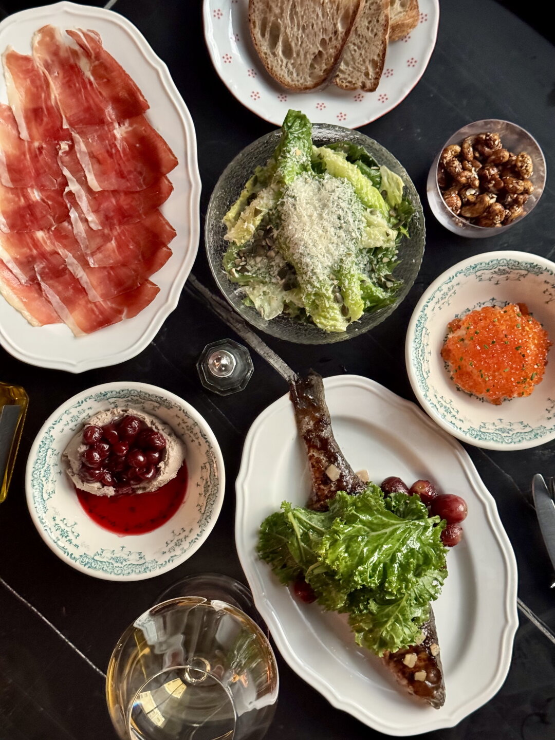 Безмолвный герой кухни — японский гриль хибачи, на котором жарят сибас, сало и виноград, объединенные в неочевидной интерпретации surf & turf. Он же является проводником реакции Майяра на стриплойне, для которого не жалеют грибного демигляса.