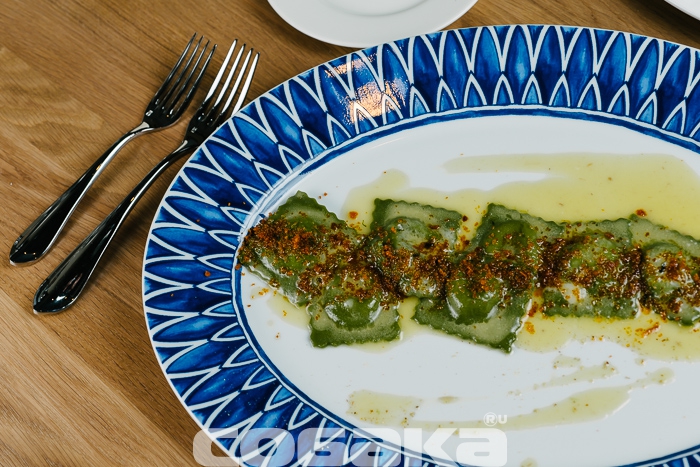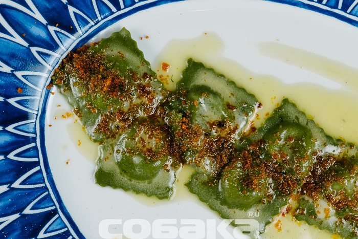 Со внешним все в порядке: два этажа, первый небольшой барный под названием «27», работающий с 12.00, и второй, для ужинов с 18.00, насыщены двадцатью семью объектами современно искусства, включая инстаграм-хит — черные сосули Ивана Плюща во дворе-колодце. На каждом сотруднике обслуживания космический мигающий датчик – не иначе как ими всеми управляют из единого центра управления полетами: может, оттуда и дали сигнал официанту без единой улыбки забрать в середине ужина с вашего стола соль. Гастрономическим ноу-хау ресторана заявлен московский повар Бонтемпи, автор одноименного ресторана на «Красном октябре». Это хорошее дело – знаменитых шефов много не бывает: тем более если он, как Валентино, знаменит тонкой, но ненавязчивой интерпретацией итальянской классики. Однако хочется, чтобы в меню было не только приветствие шефа позолоченными итальянскими буквами, без перевода, кстати, зачем, но и хоть крошечный раздел с блюдами, которые не повторяют позиции столичного заведения, а сделаны специально для петербургского ресторана – учитывая, что Бонтемпи собирается быть наездами с неопределенной частотой. Все это, конечно, запросы стилистического толка, а не санитарная норма вроде необходимости в чистых тарелках — но так и цена на пиццу «Маргарита» в 450 рублей это явно не себестоимость.