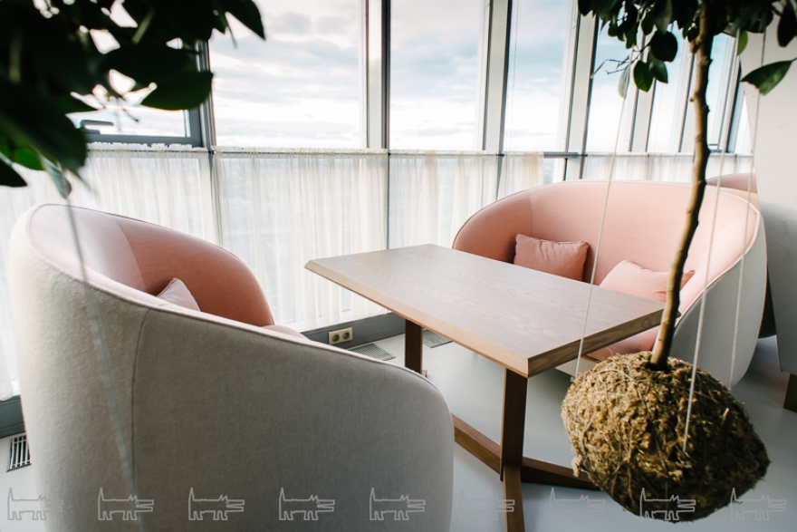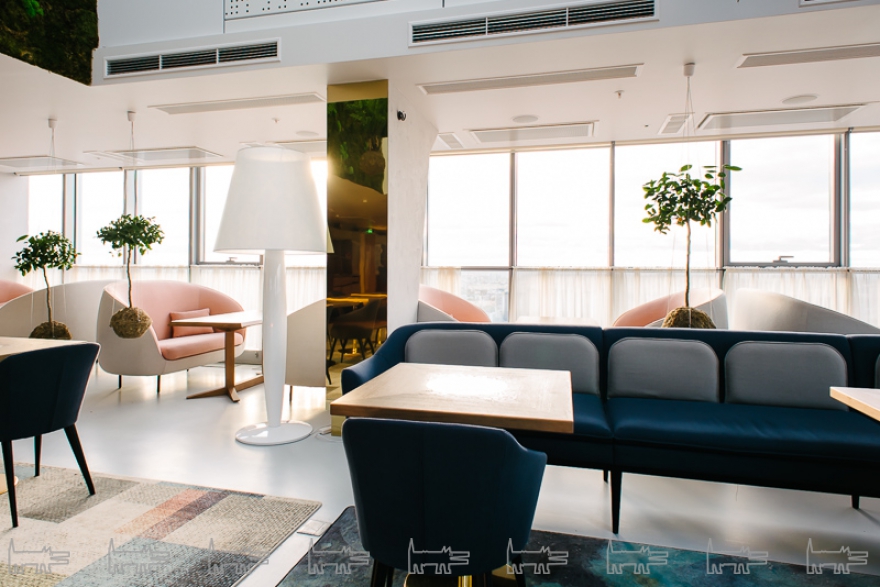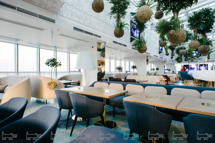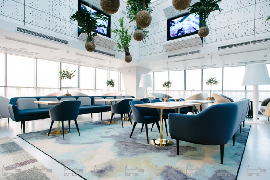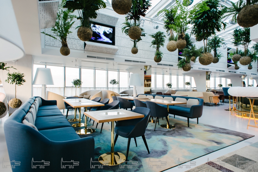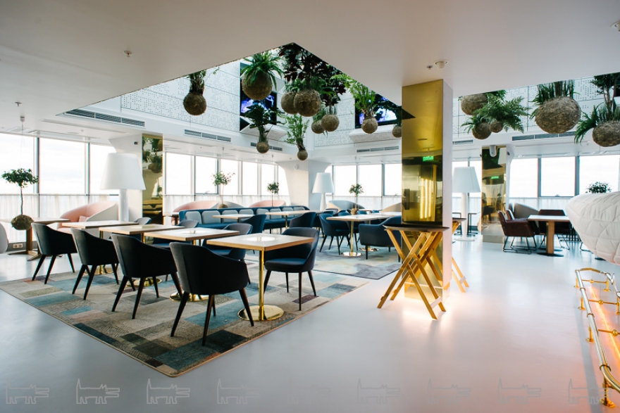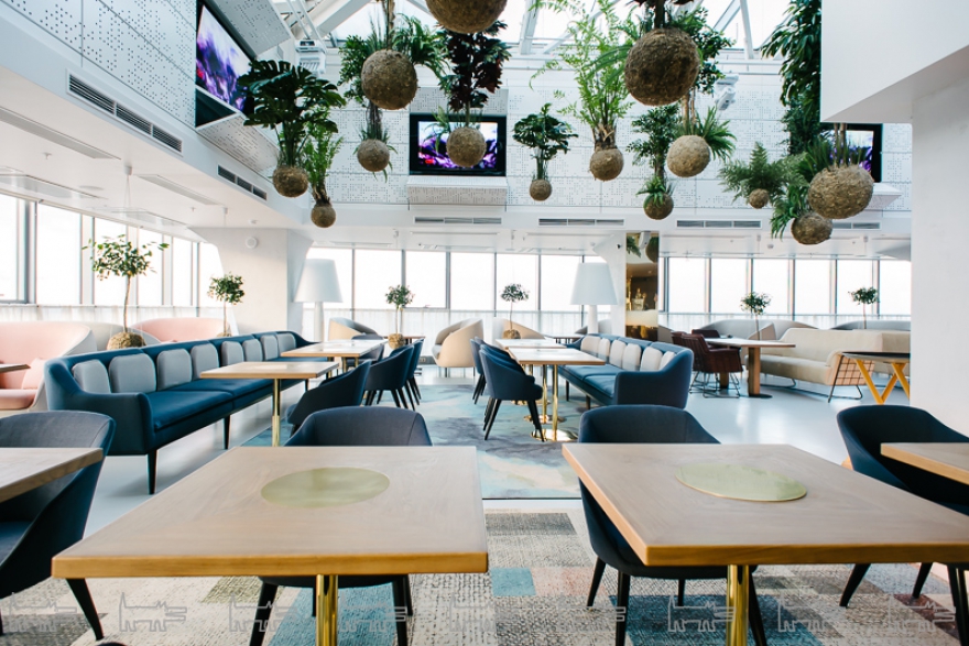 Сорок первый этаж небоскреба на площади Конституции — самая высокая точка не только в Петербурге: вся Северная Европа от Лондона до Осло не может похвастаться рестораном на уровне 145,5 метров с углом обзора 360 градусов. Вид в сторону взлетно-посадочных полос Пулково и пулковские же высоты достается гостям зала с принаряженным дизайном скандинавского толка и аппетитными ароматами с открытой кухни — атмосфера тут на долгие обеды всей семьей — благо, рядом детская комната. Панорама с видом на центр города до телебашни и далее до самого Финского залива будет у тех, кто выберет второй зал — светско-тусовочный, c живой музыкой по вечерам, и фьюжн-дизайном — парящими клумбами, абажуром из гиганских кос, стенами, перфорированные узорами, в которых въедливый знаток может найти русские мотивы, и баром, обитым стеганым одеялом. Все эти чудеса придумали в московском бюро «Архпоинт», которое проектировало московский видовой ресторан White Rabbit, в 2015 году ставший двадцать третьим в мировом рейтинге The World's 50 Best Restaurants.