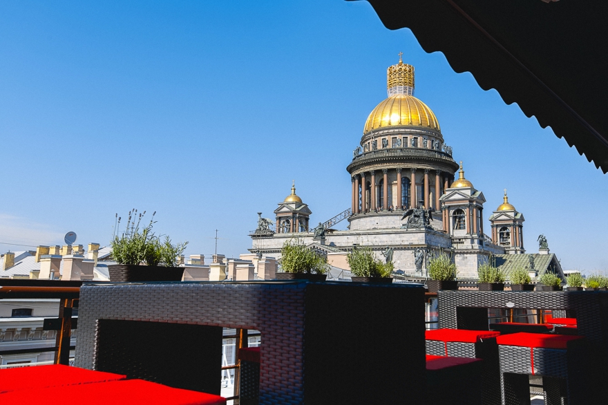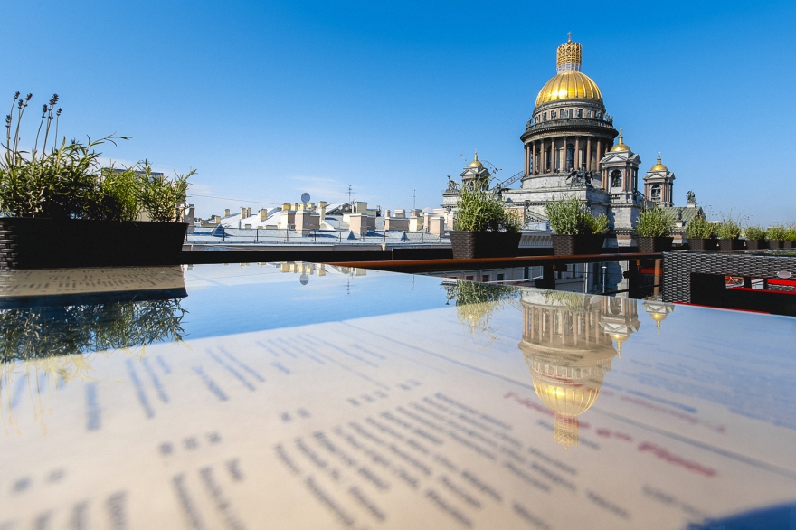 Пьерлуиджи Тротта: Мы хотели создать динамичный концепт. Задумались о высоких стульях и столах потому, что для молодой публики это интереснее. Другая наша фишка — это селфи-палки в свободном доступе. Сейчас время технологий, все любят фотографироваться и выкладывать посты из интересных мест в сеть. Мы решили дать публике такую возможность. Учитывая вид с террасы на Исаакиевский собор и стремление гостей запечатлеть себя на фоне этой красоты, монопод — это то, без чего невозможно обойтись.