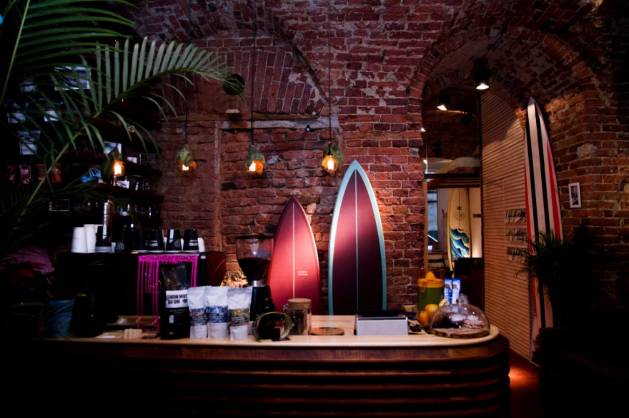 Кофейня, выросшая из мобильного фудтрака, осенью вырастет до большого проекта — на Малой Конюшенной откроется вторая кофейня Surf Coffee. Первое место, на Гороховой улице, 34 уже пользуется популярностью с момента открытия осенью 2015 года — внутри постарались воспроизвести атмосферу балийской безмятежности и калифорнийского стиля.
