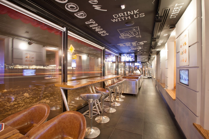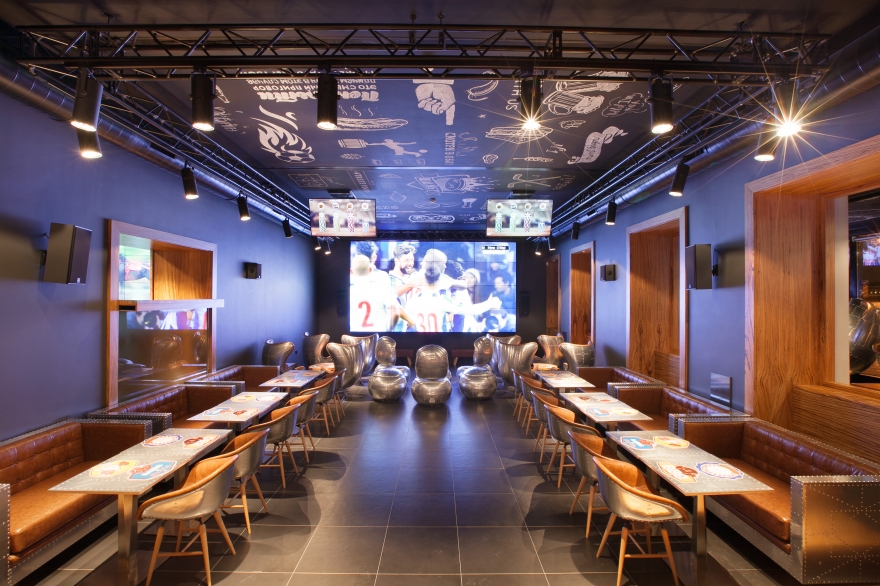 Спорт-бар на Университетской набережной намерен претендовать на звание самого высокотехнологичного паба города: он оборудован более, чем 50 LED-телевизионными панелями, рассредоточенными по трем залам и формирующими единые экраны диагональю 220 дюймов. Владельцы утверждают, что эффект присутствия на матче усиливает акустическая система Dolby Atmos. Мультимедийный центр предусмотрены также и для регулярных турниров среди любителей игровых консолей.